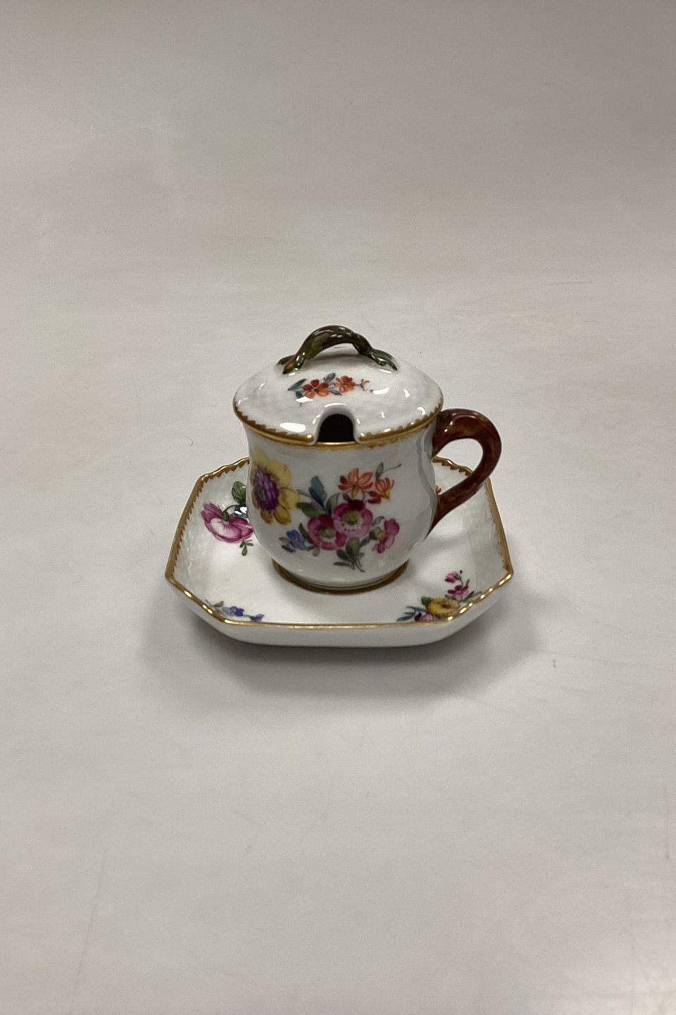 Royal Copenhagen Fuld Saksisk Blomst Sennepskop No. 1594 og Underkop No.1674