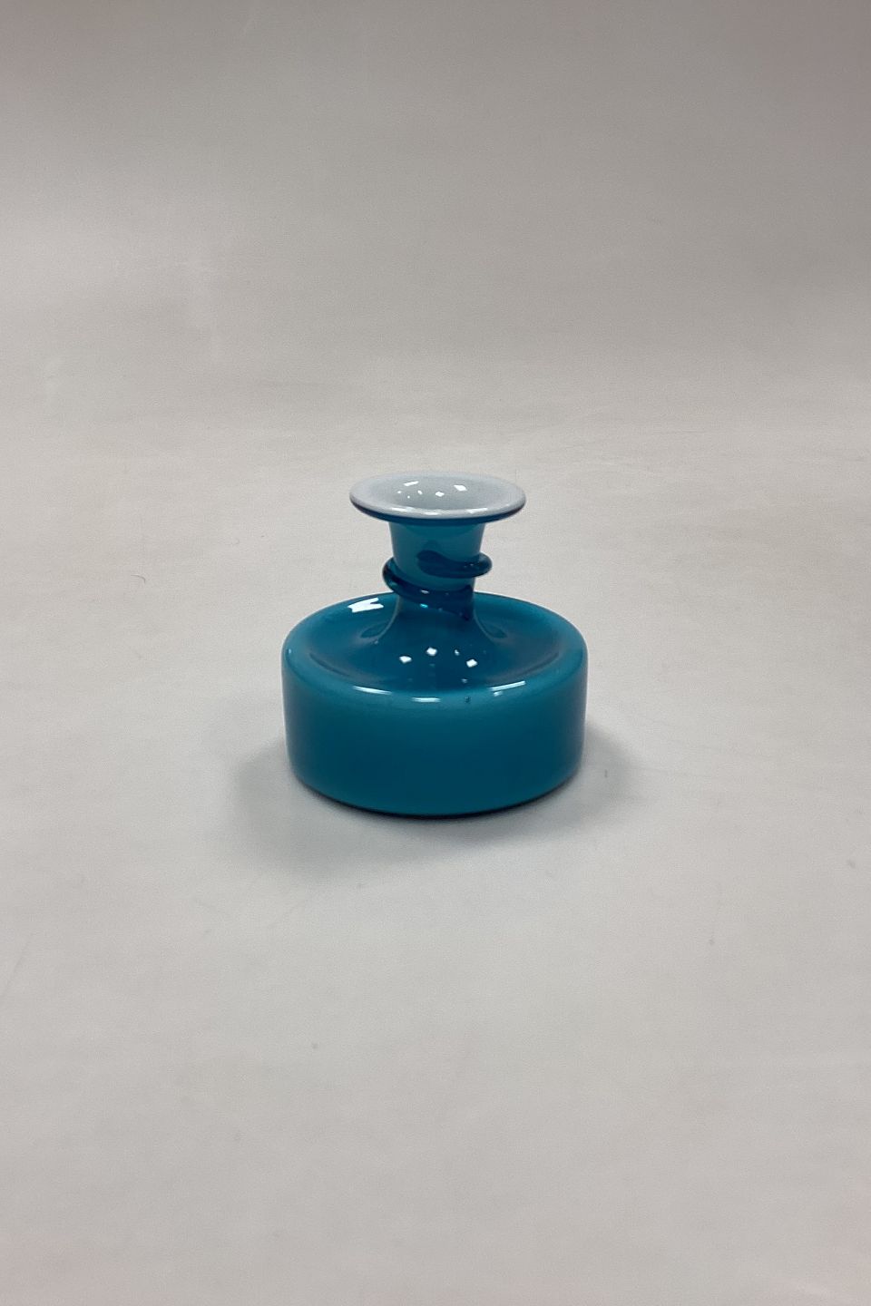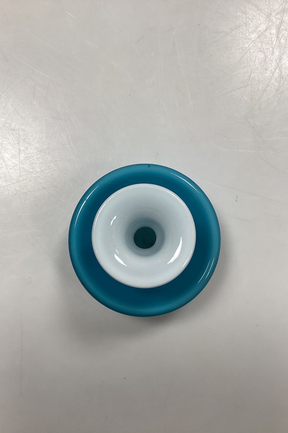 Beskrivelse: Holmegaard Palet Glaslysestage. Designet af Michael Bang. Farve: Turkisblå og hvid indvendig. Brugsspor i bunden og lille boble på kanten, se foto.