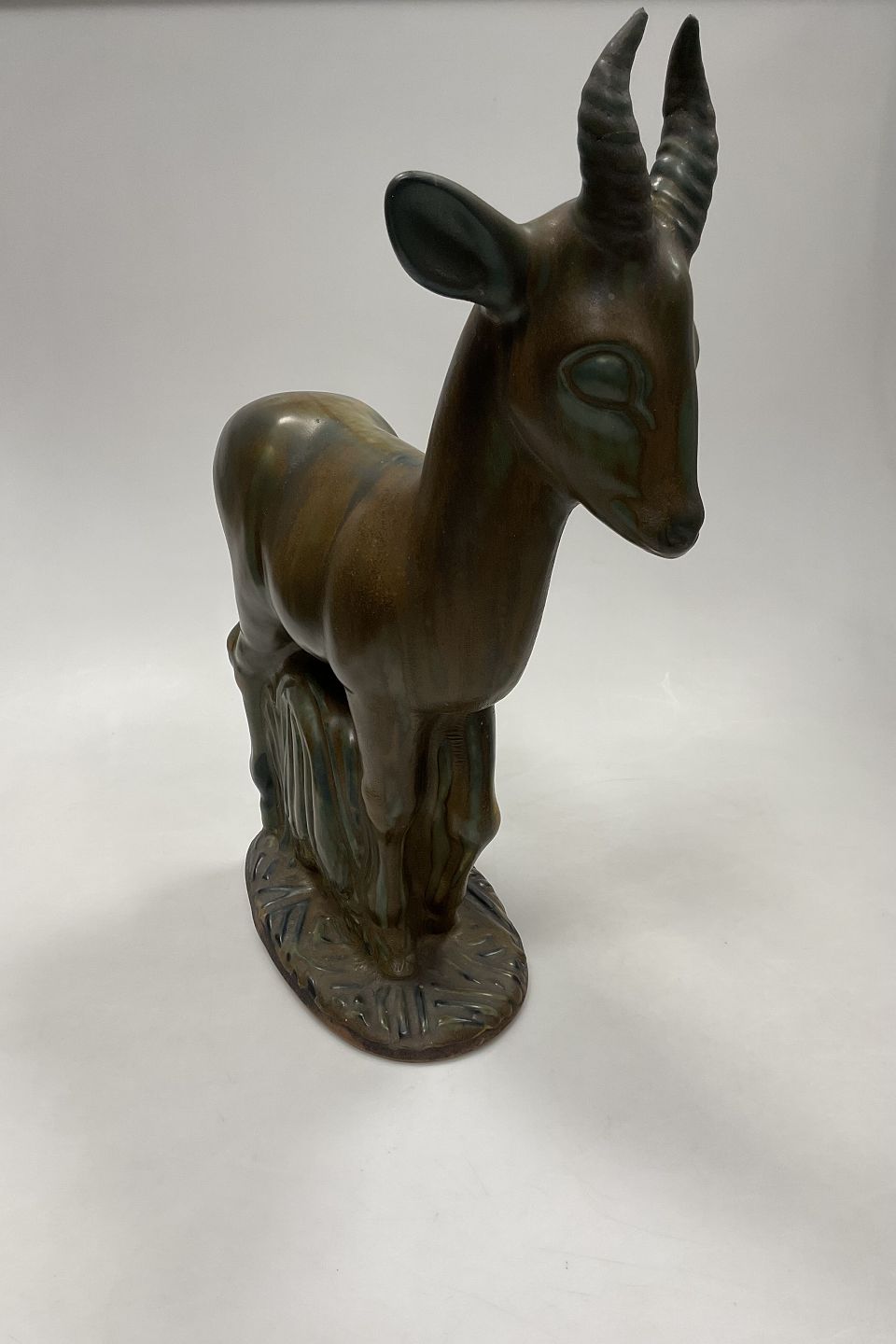 Beskrivelse: Axel Salto Stentøjsfigur af Hjort fra Carl Haliers værksted Ikke Royal Copenhagen