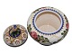 Beskrivelse: Aluminia lågkrukke med fugl.