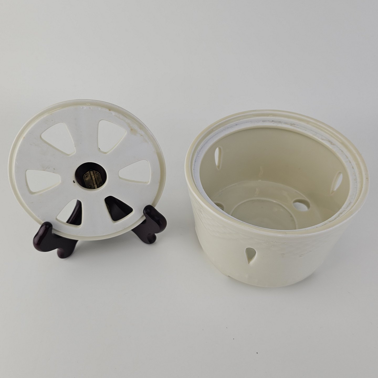 Beskrivelse: Tevarmer fra stellet Elegance cremefarvet