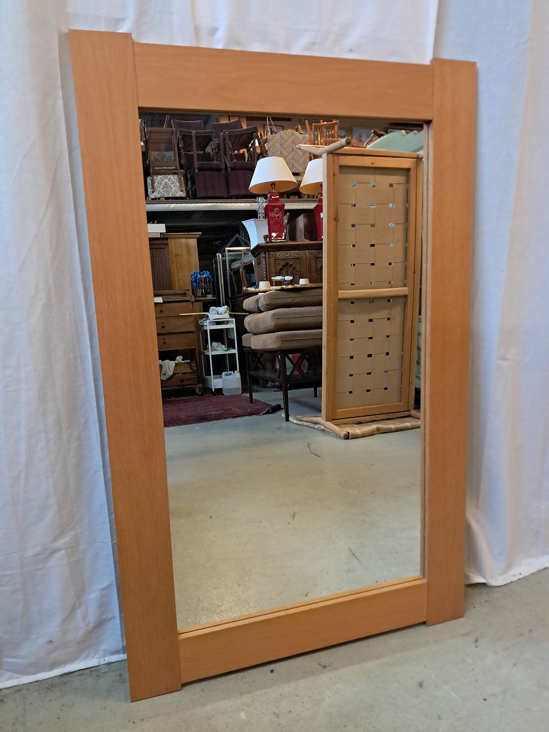 Beskrivelse: Spejl i fineret egetræ, fra 1970erne.