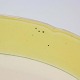 Fajancestel med gul dekoration på lys baggrund og med vissengrøn streg.