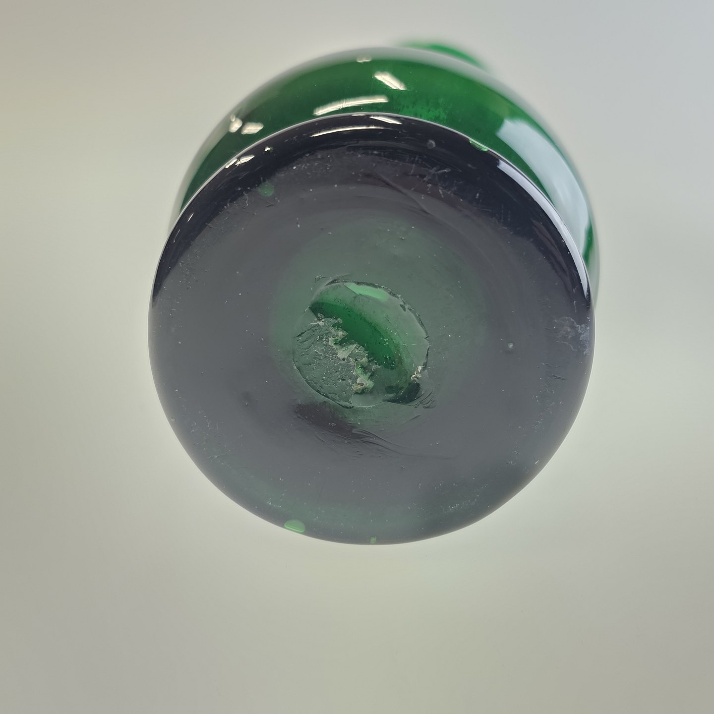 Beskrivelse: Håndblæst balusterformet hyacintvase i grønt glas