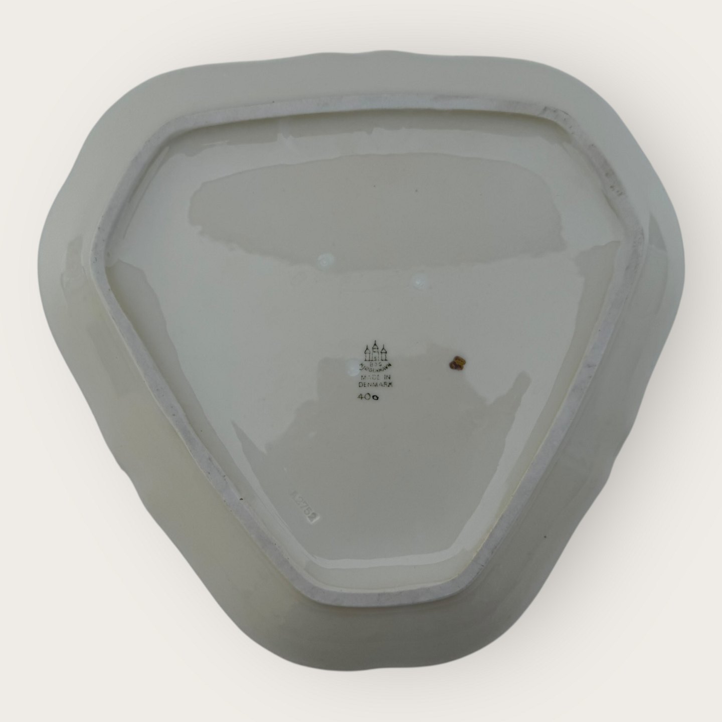 Beskrivelse: Bing & Grøndahl, Frigga, Anemone, # 40, trekantet fad, 24 cm bredt, 1. sortering *Pæn stand*