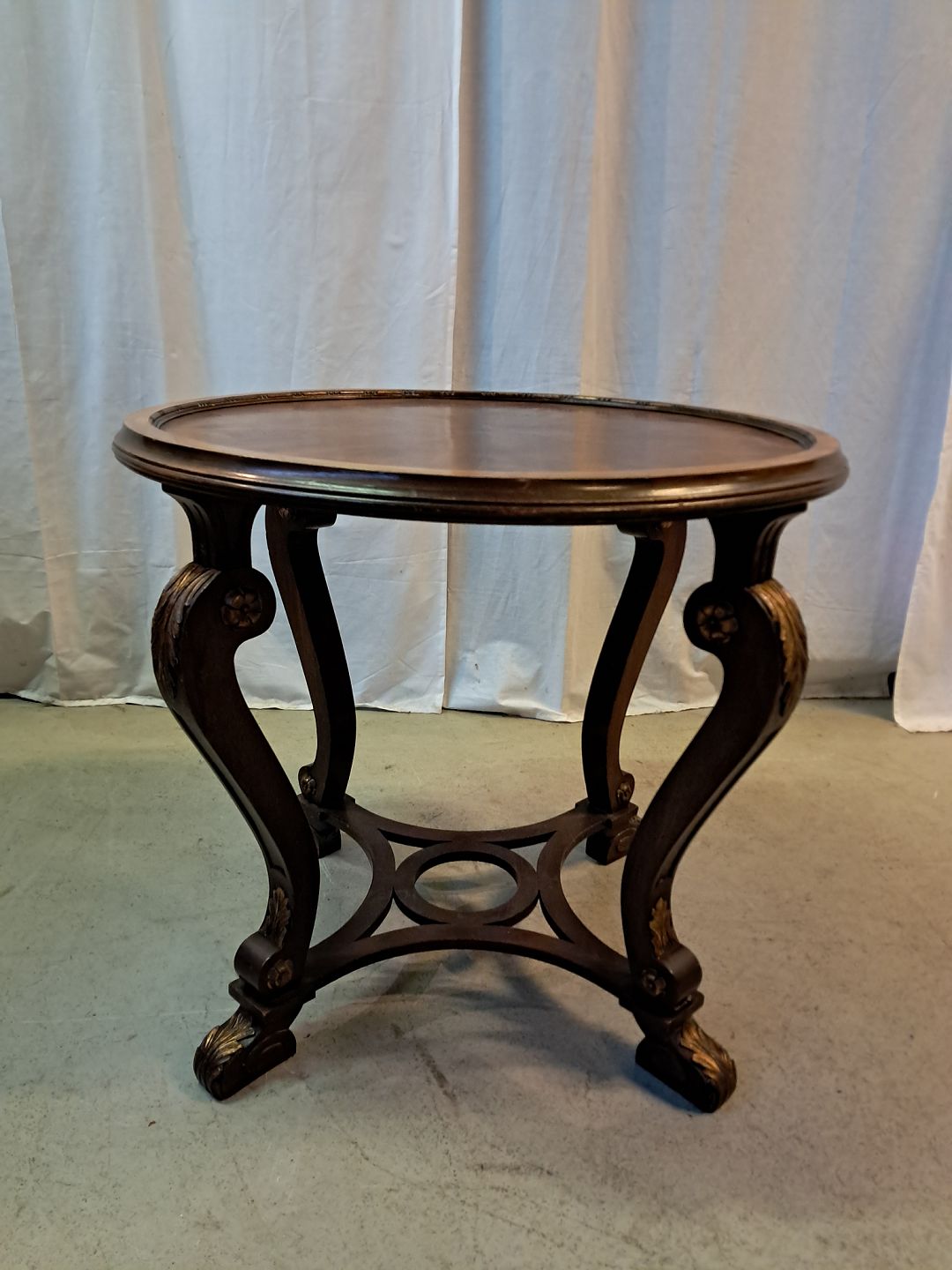 : Rundt sofabord i fineret birketræ, fra 1950erne.