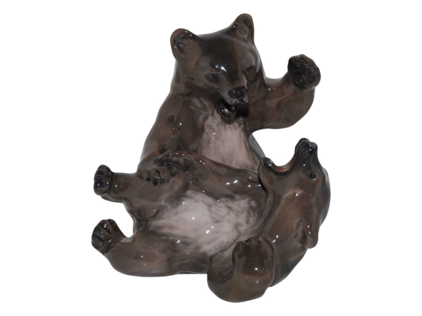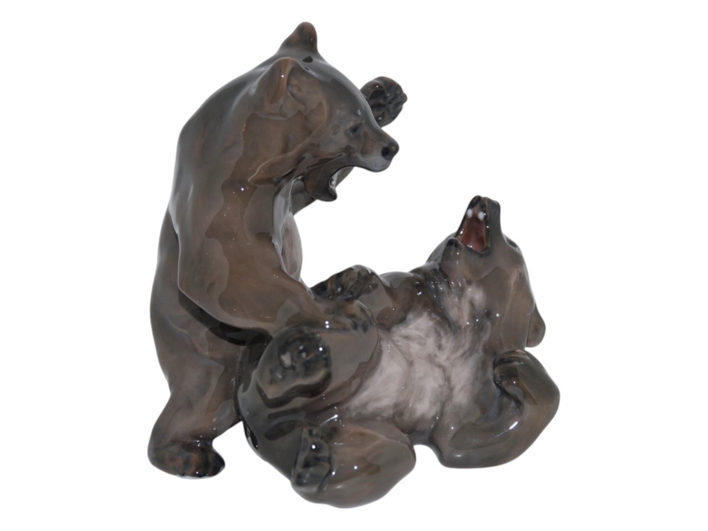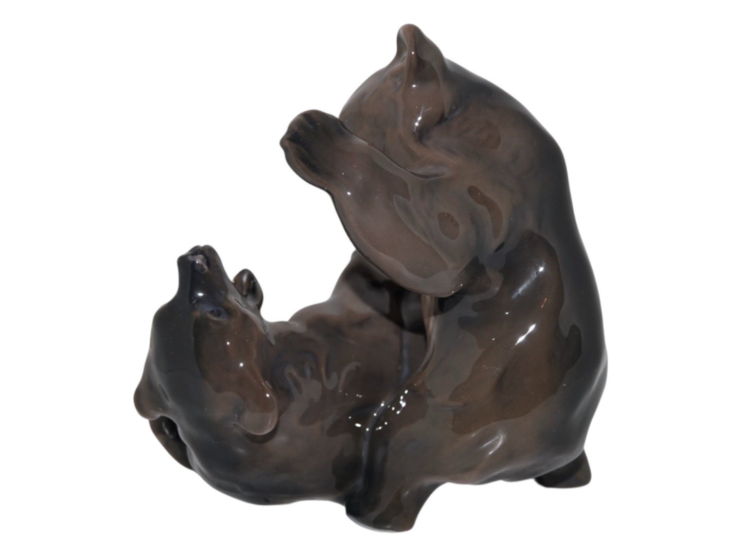 Description: Royal Copenhagen figurine, two brown bears fighting. Rarely seen in this color.