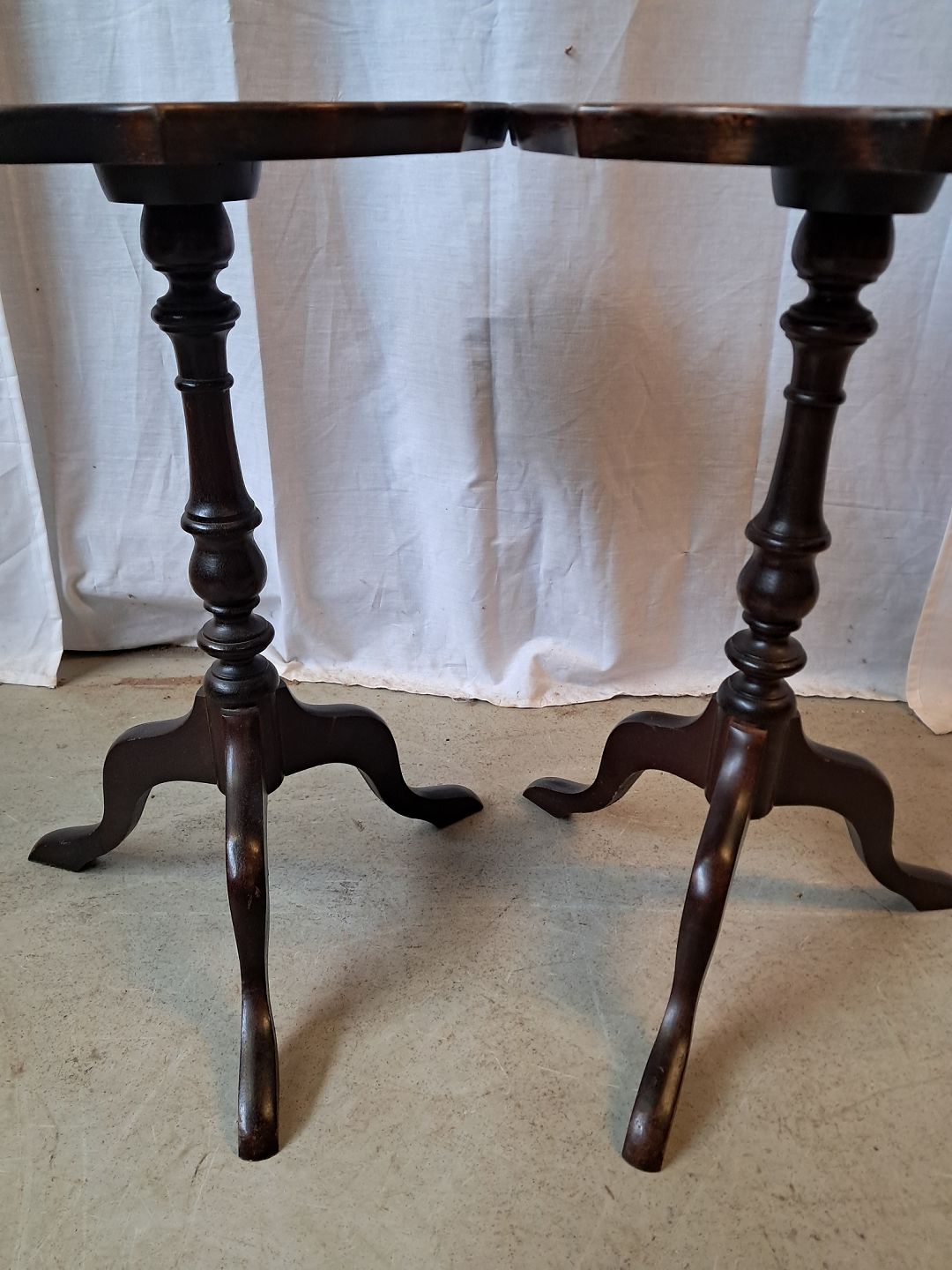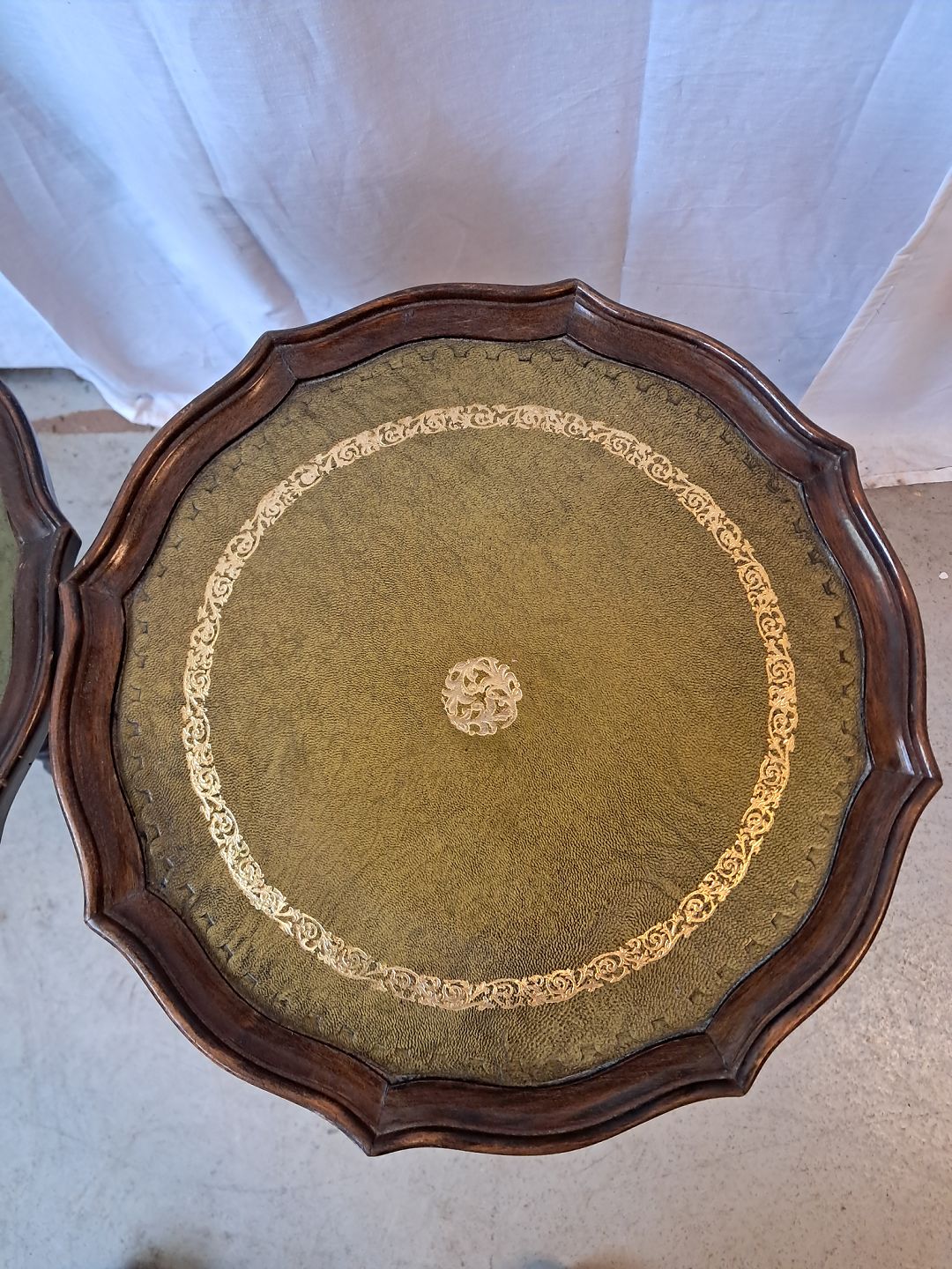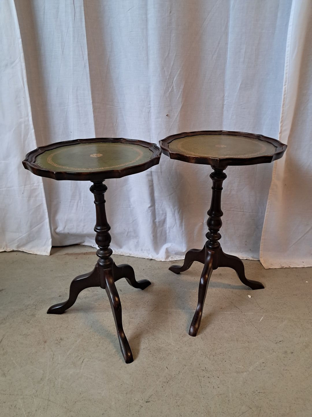 Beskrivelse: 2 Pynteborde i bøgetræ med kunst læder indlæg, fra 1990erne.