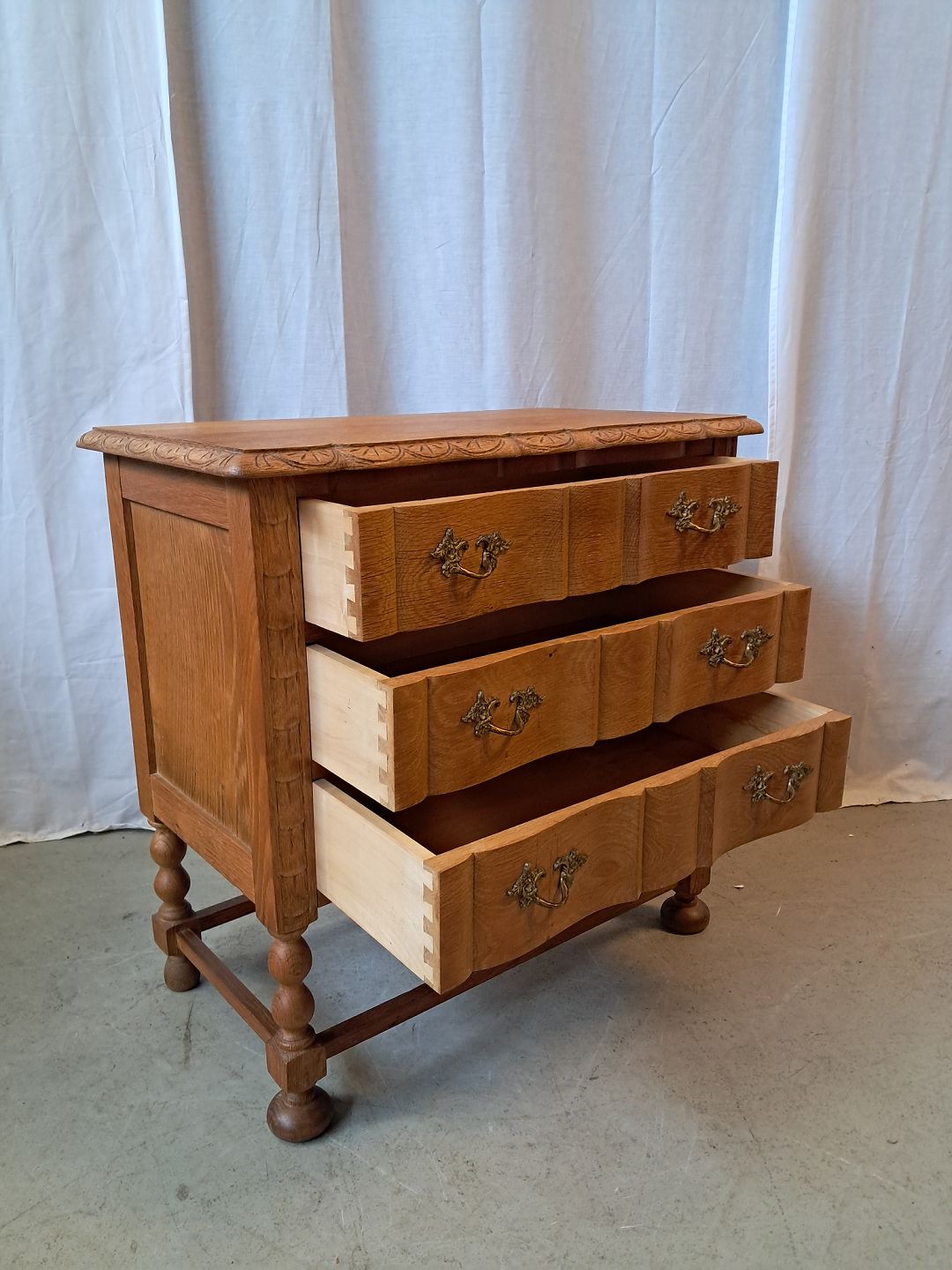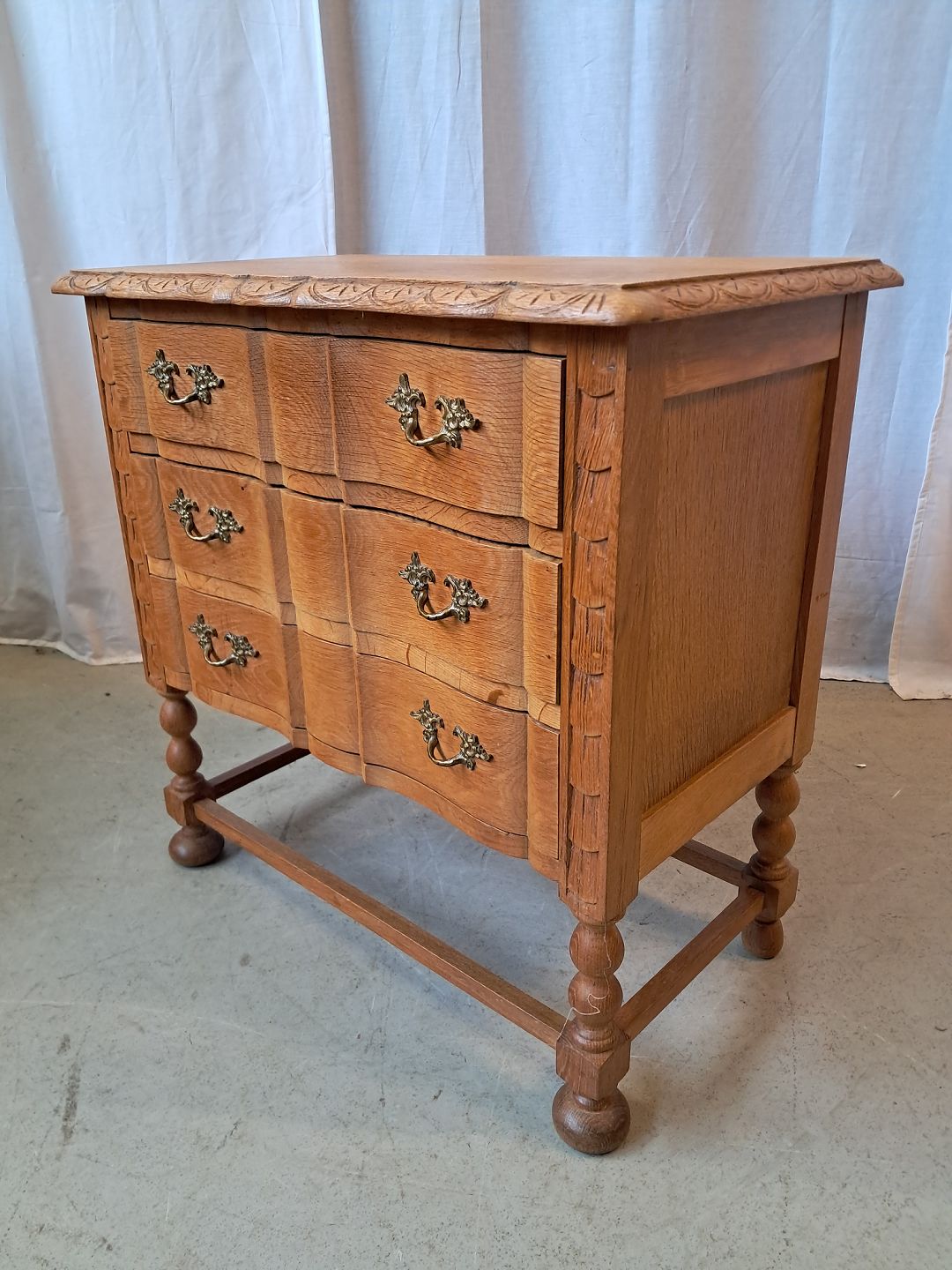 Beskrivelse: Kommode i massivt egetræ, fra 1980erne.