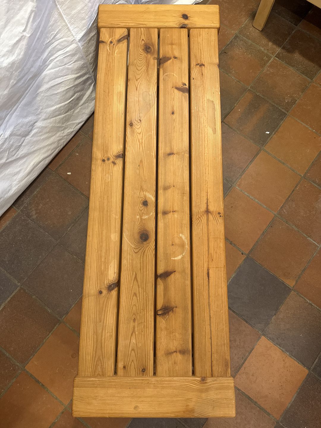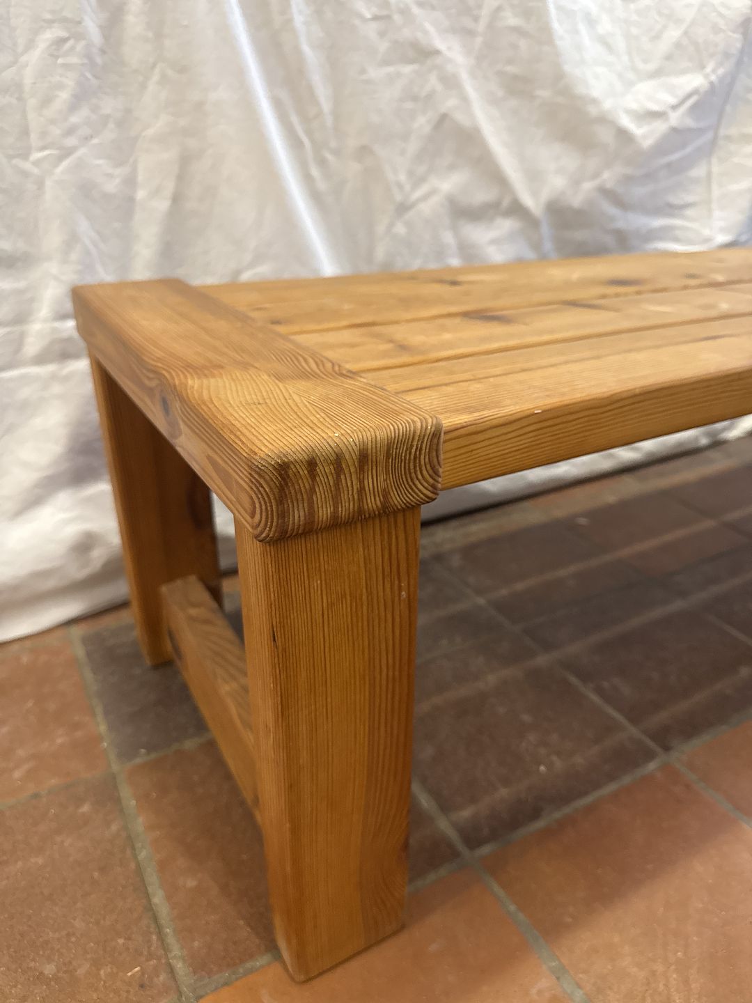 Beskrivelse: Svensk møbeldesign lav bænk udført i massiv fyr.
