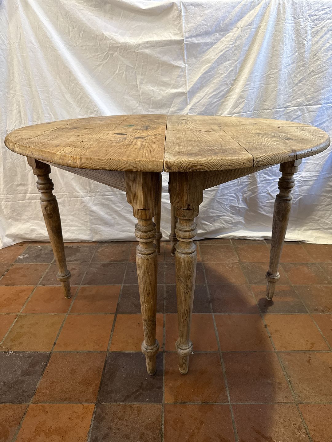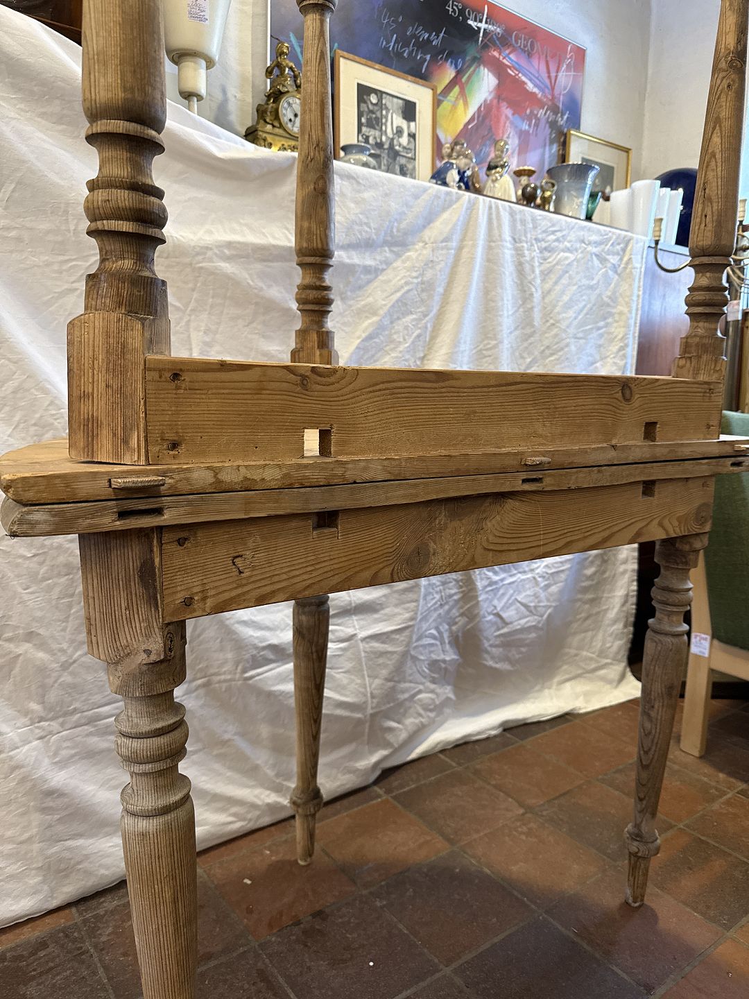Beskrivelse: Antikt spisebord i massiv fyrretræ fremstillet ca. 1870'erne.