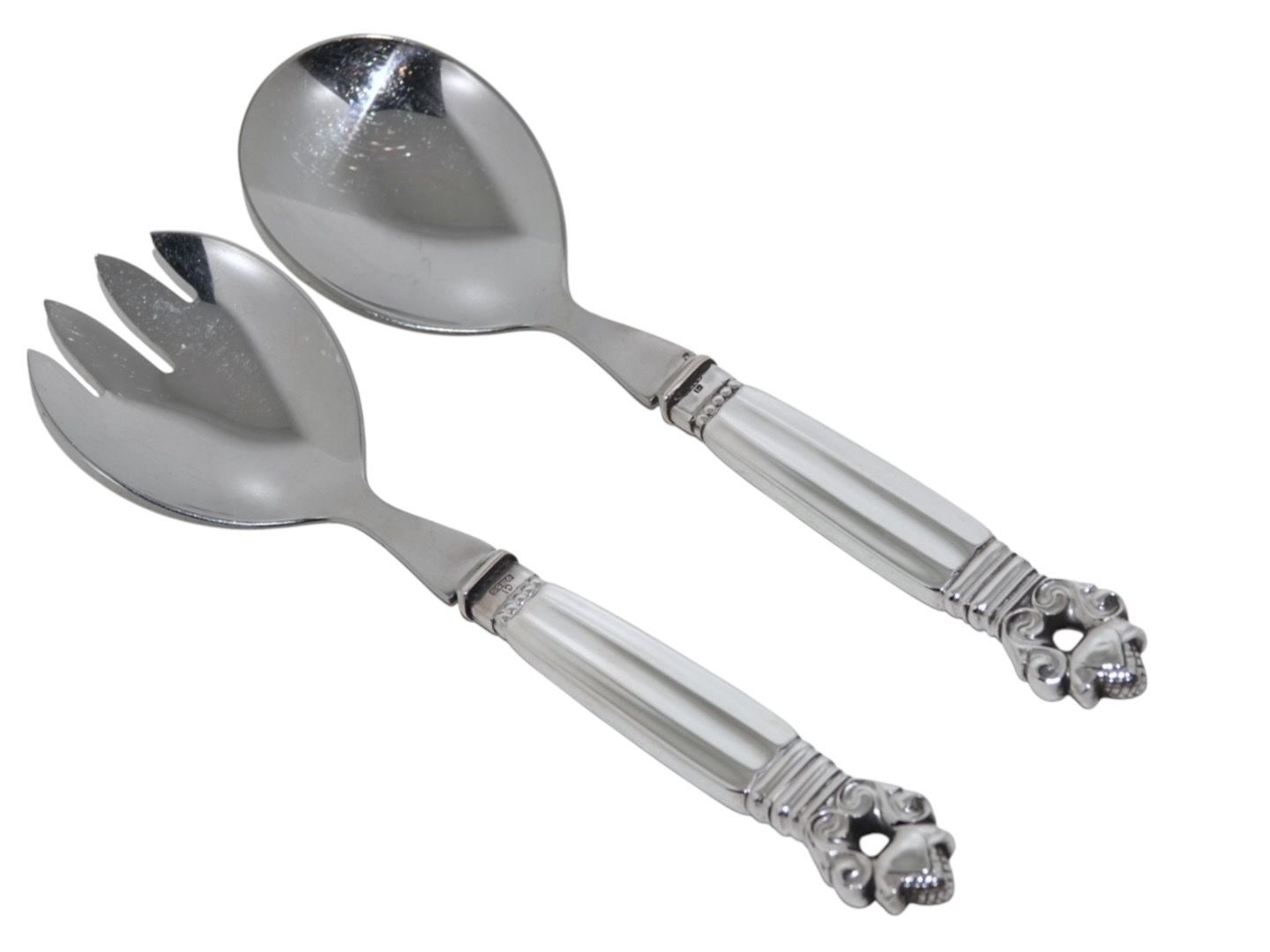 Beskrivelse: Georg Jensen Konge sølv og rustfrit stål, lille salatsæt.