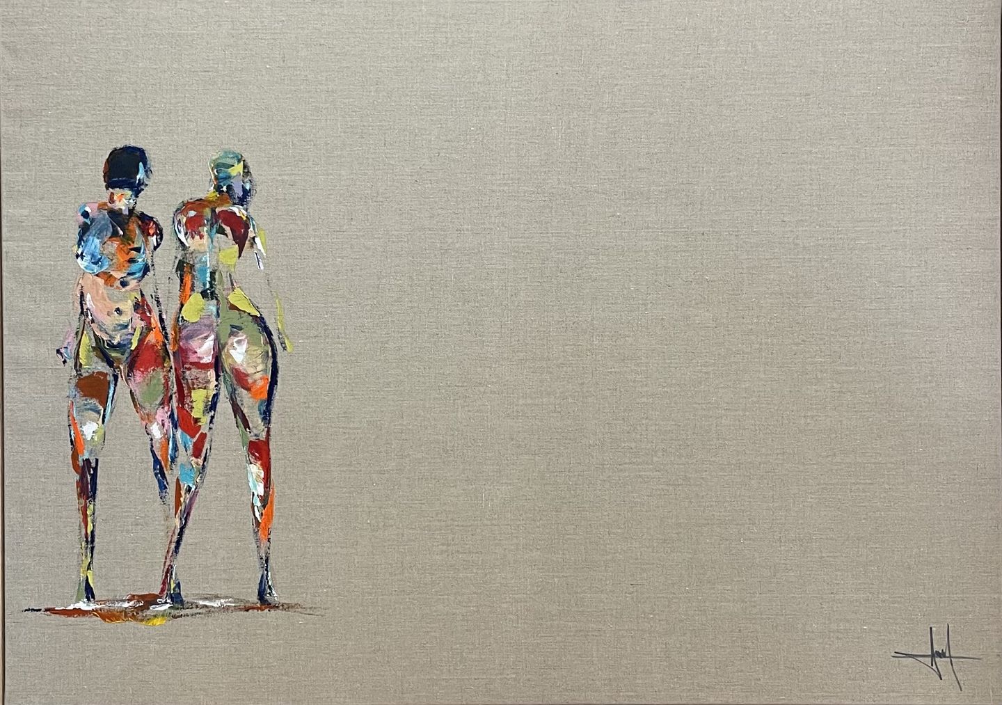 "Less is more" elegant komponeret akryl maleri i massiv egetræs svæveramme fra Bogø Design
