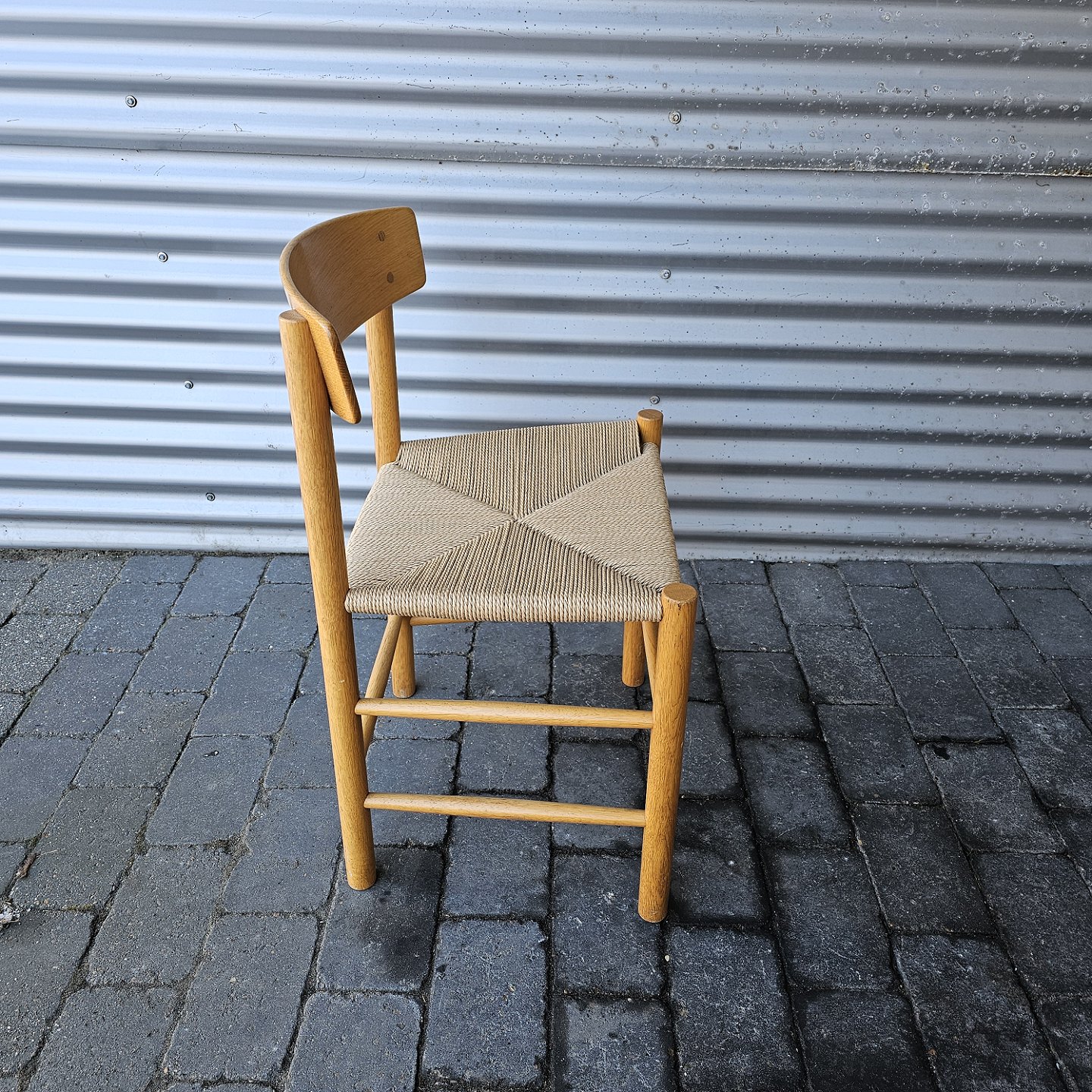 Beskrivelse: Sæt af 4 folkestole i lakeret eg med sæder af flet, model J39