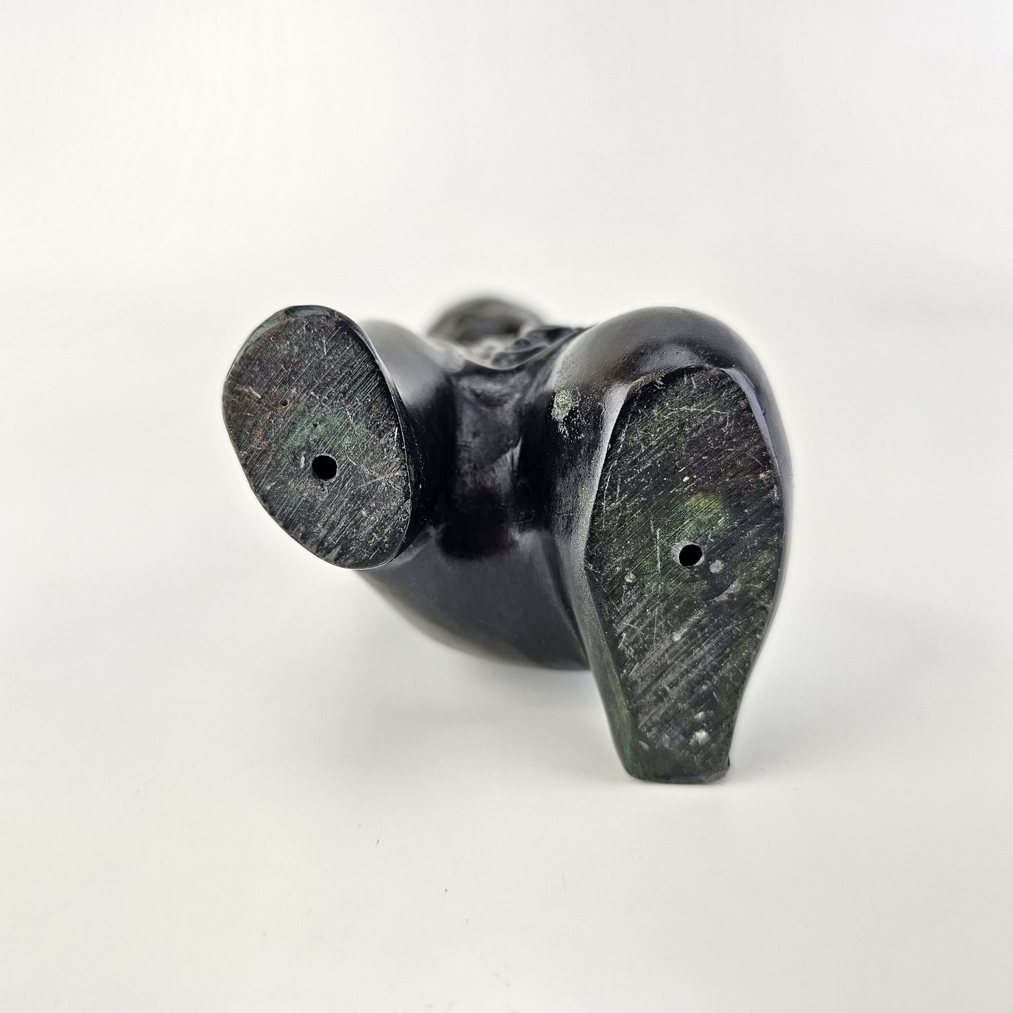 Beskrivelse: Grønlandsk figur med motiv af en knælende person med blomster Diskometal