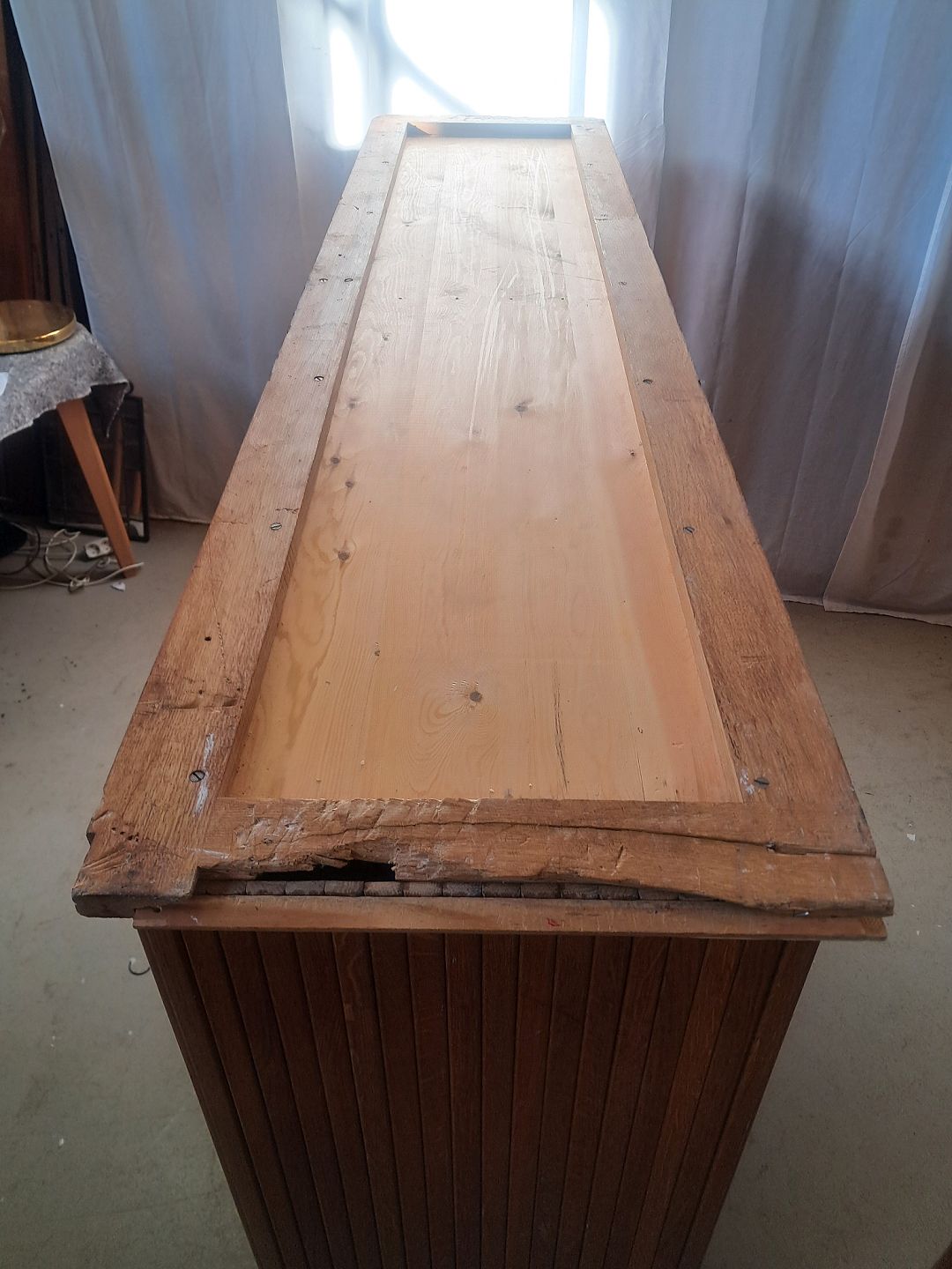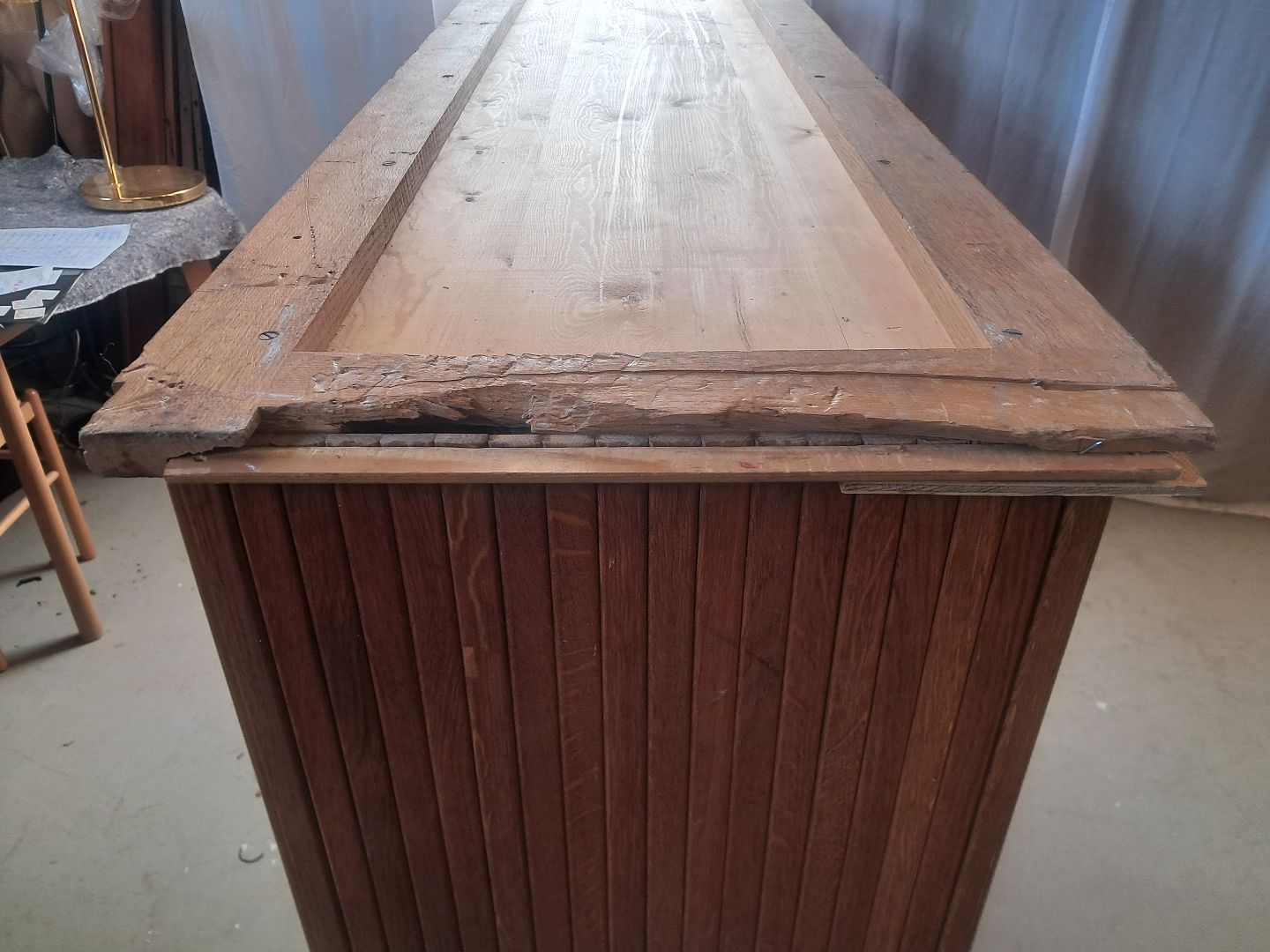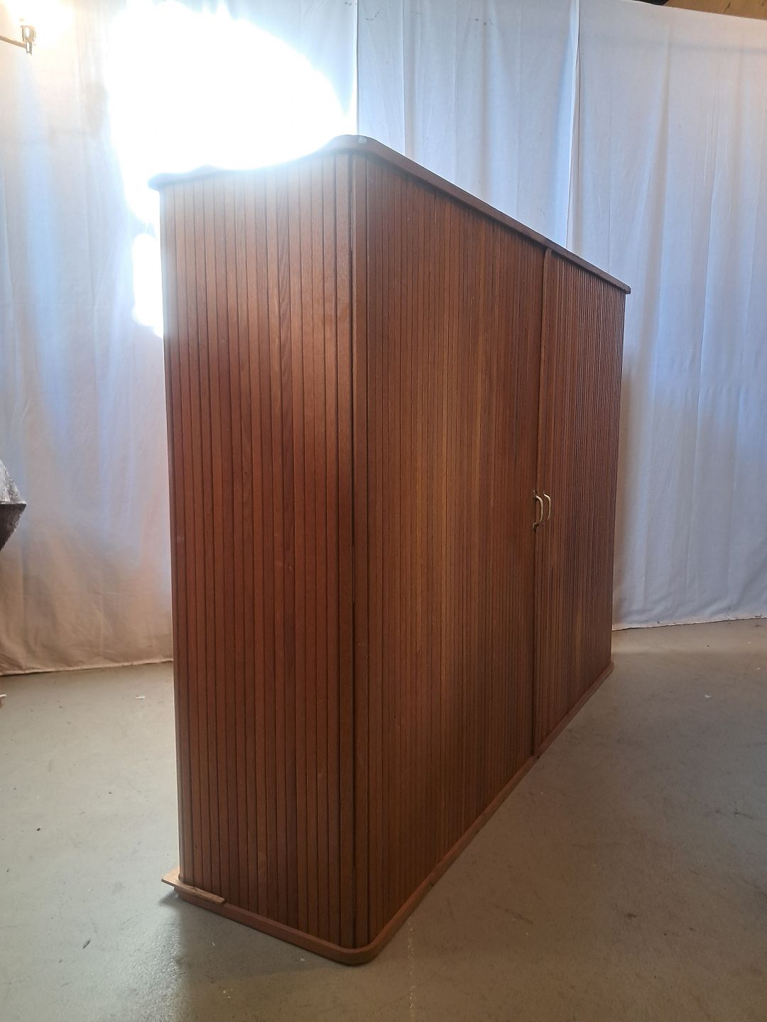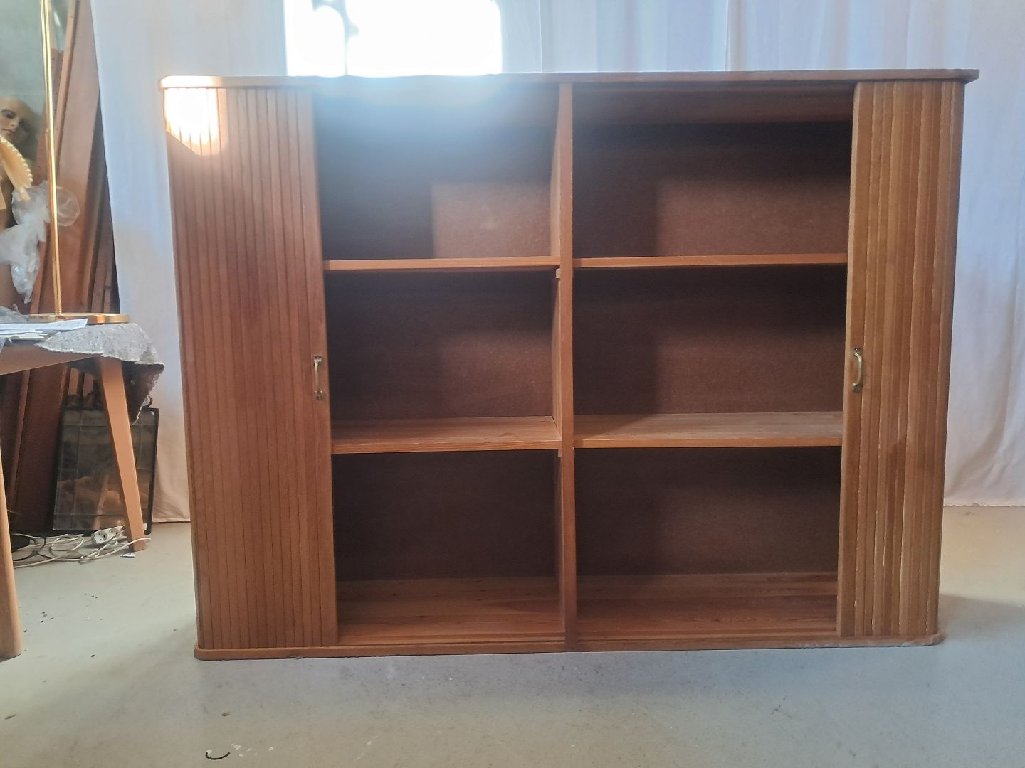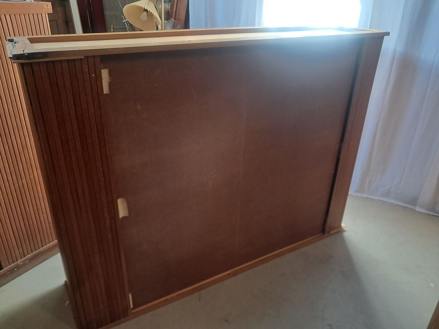 Beskrivelse: Jalousiskab i fineret egetræ, fra 1950erne.