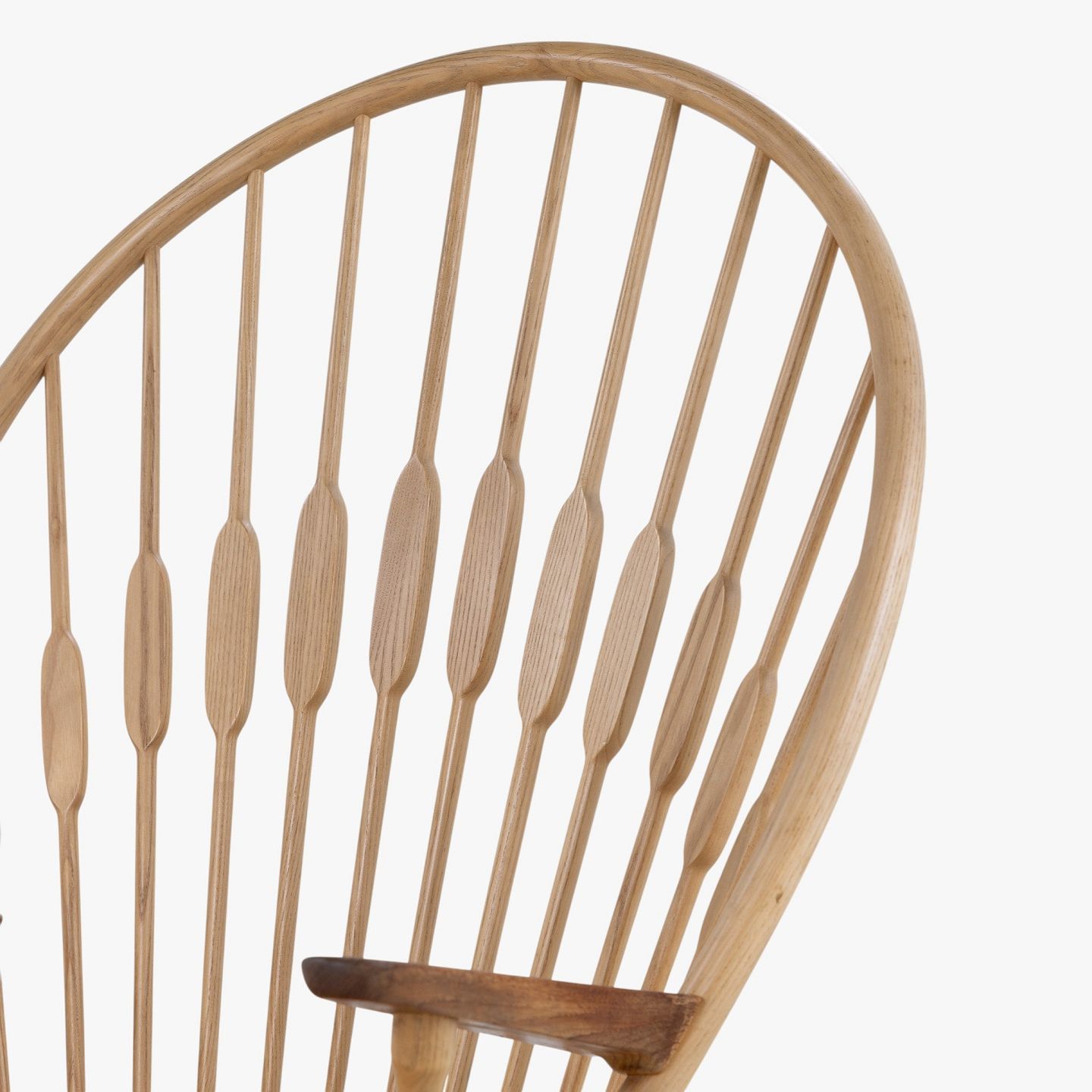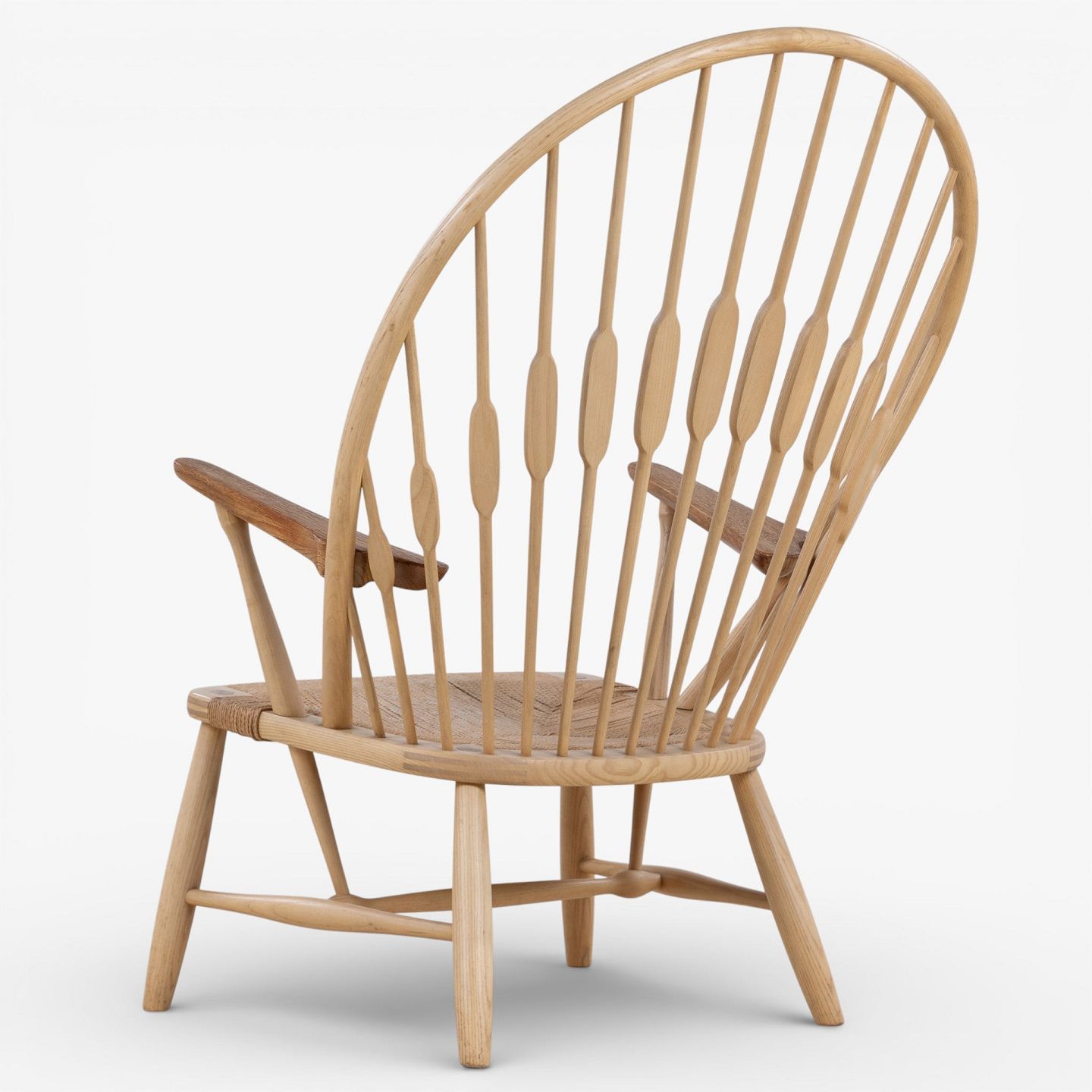 JH 550 - 'Påfuglestolen'-lænestol i patineret ask med armlæn i teak og sæde i flettet papirgarn. Brændemærket fra producent.