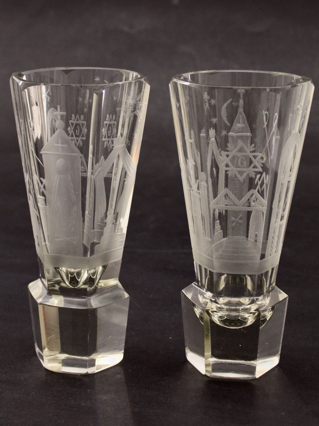 Beskrivelse: Frimurer glas med mange symboler H.16 cm. emne nr. 632451