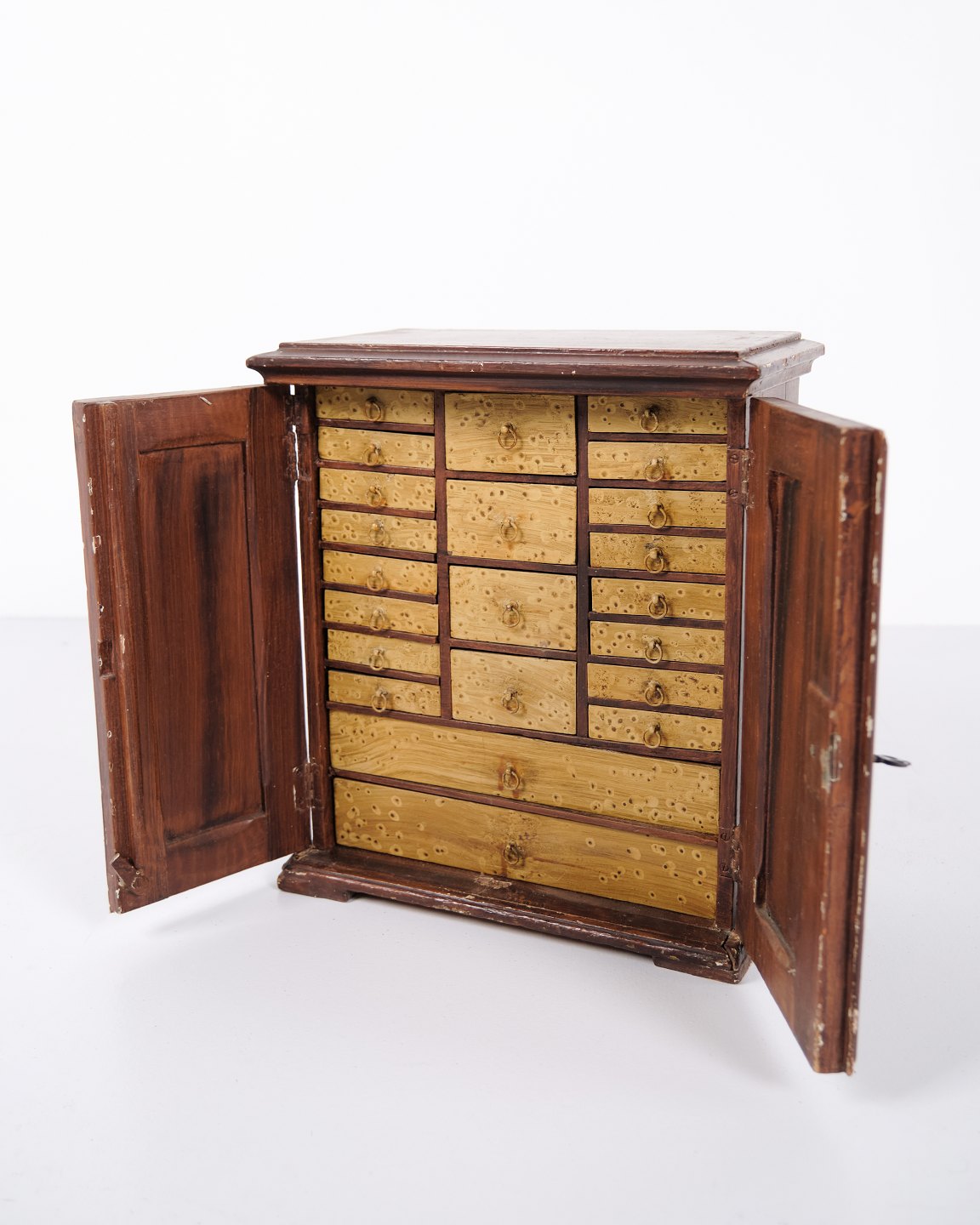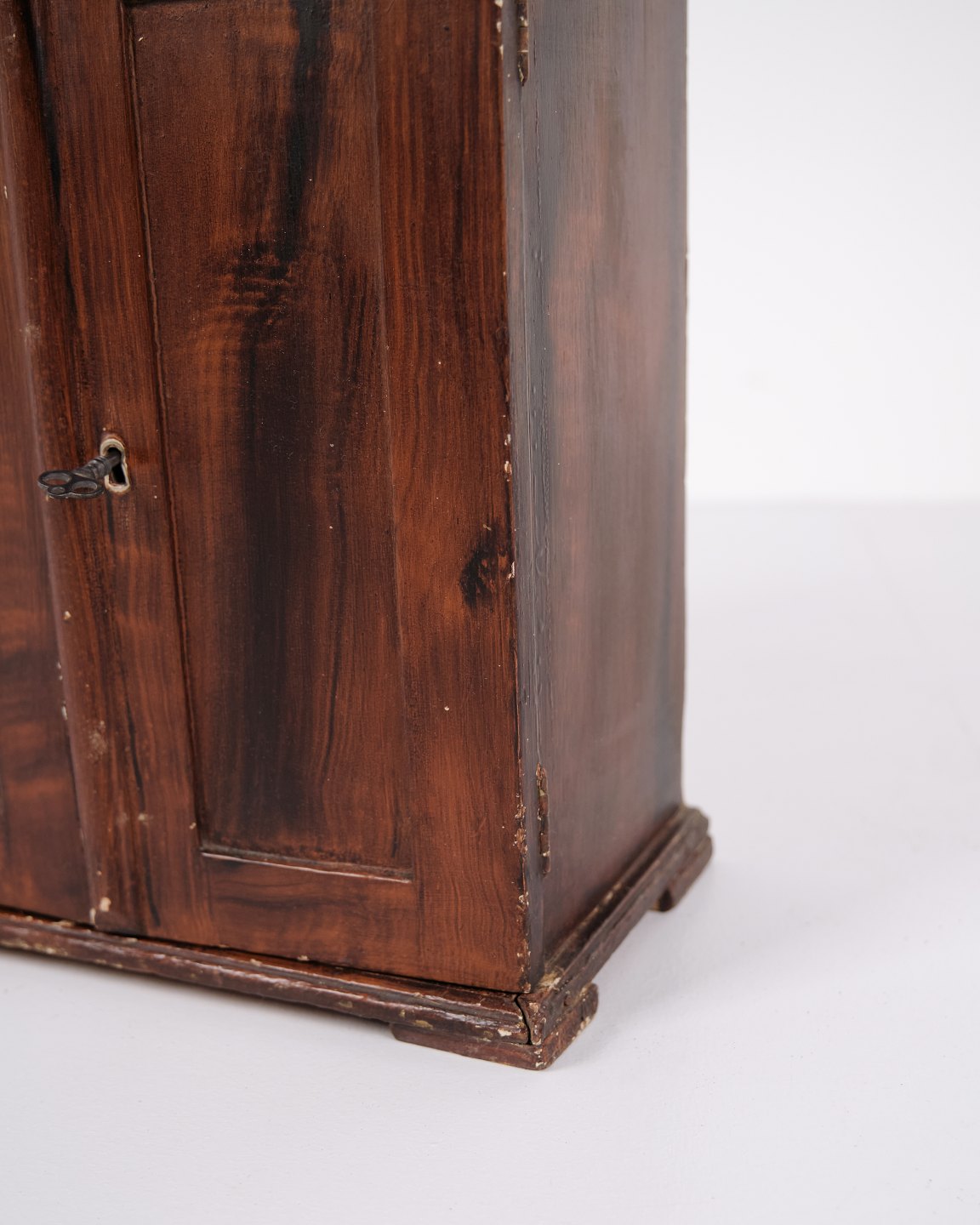 Beskrivelse: Antikt miniaturemøbel i åremålet fyrretræ med håndsmedede beslag fra 1840’erne. Unikt og dekorativt samlerobjekt med historisk karakter.