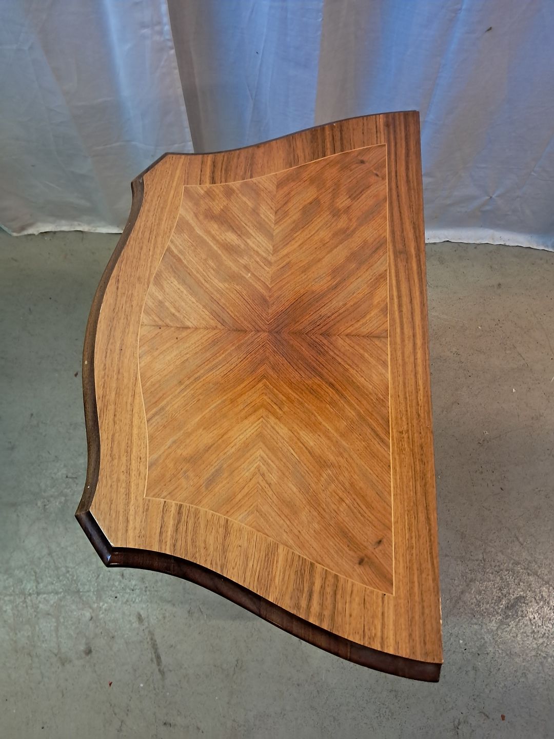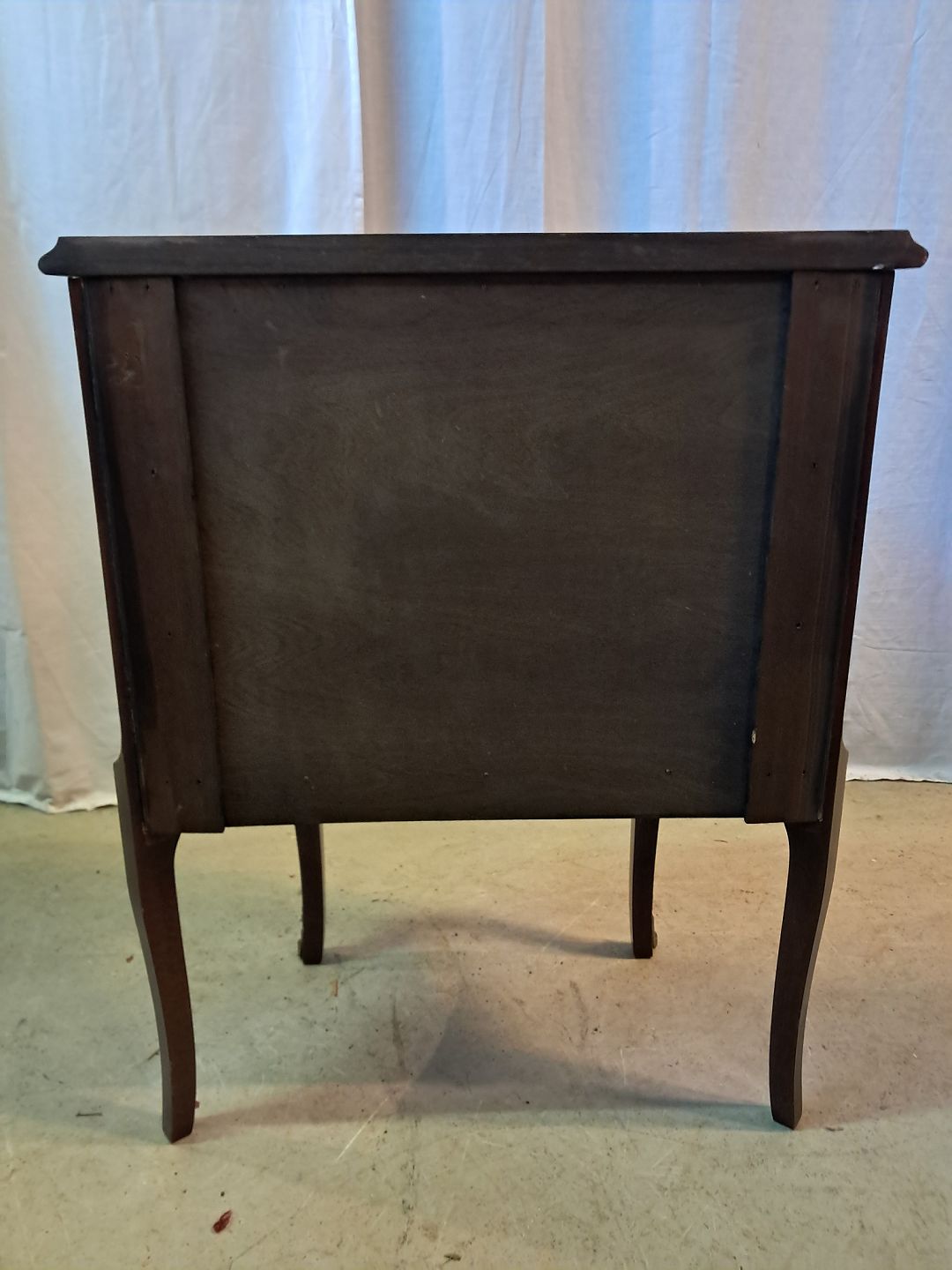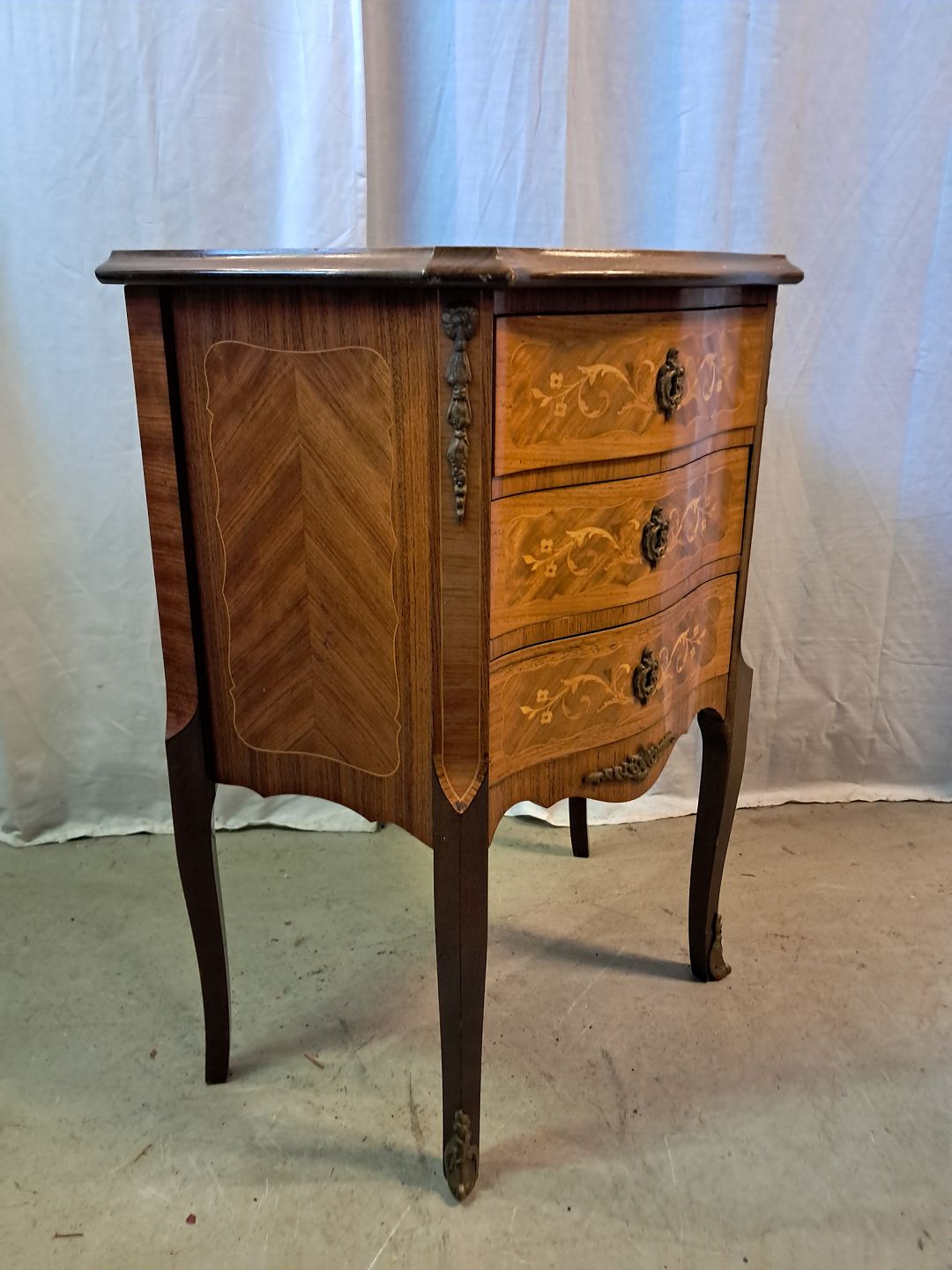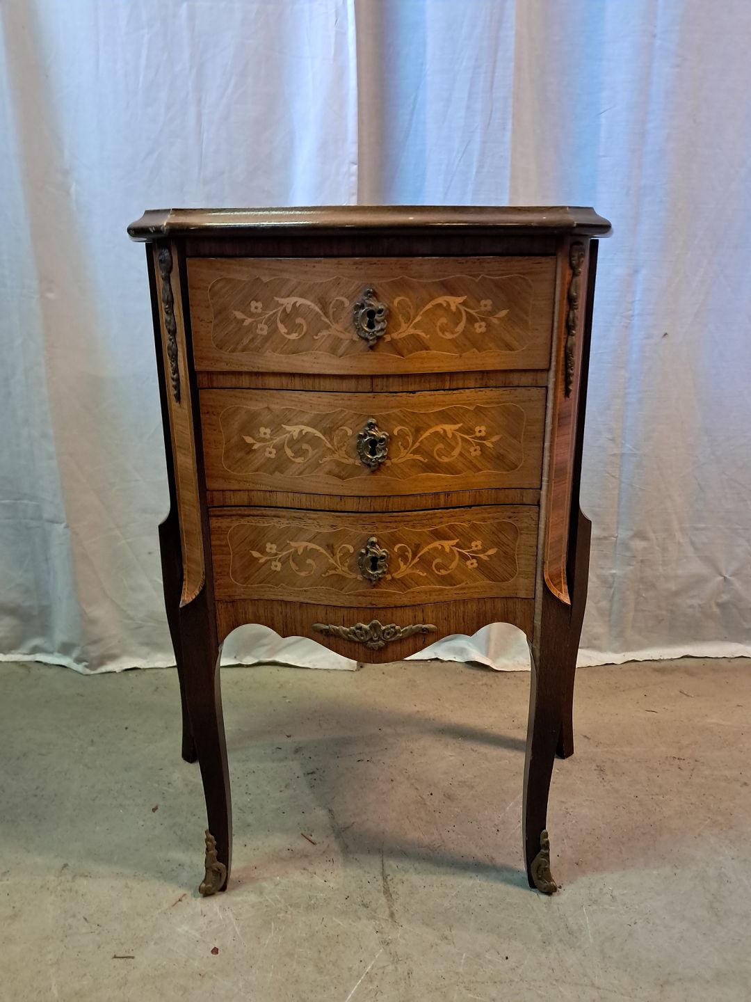 : Kommode i fineret mahogni med intarsia, fra 1980erne.
