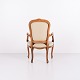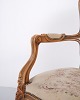 Beskrivelse: Nyrokoko armstol fra 1930’erne med buede ben og mønstret blomstret stof. Klassisk og dekorativt møbel i elegant stil.