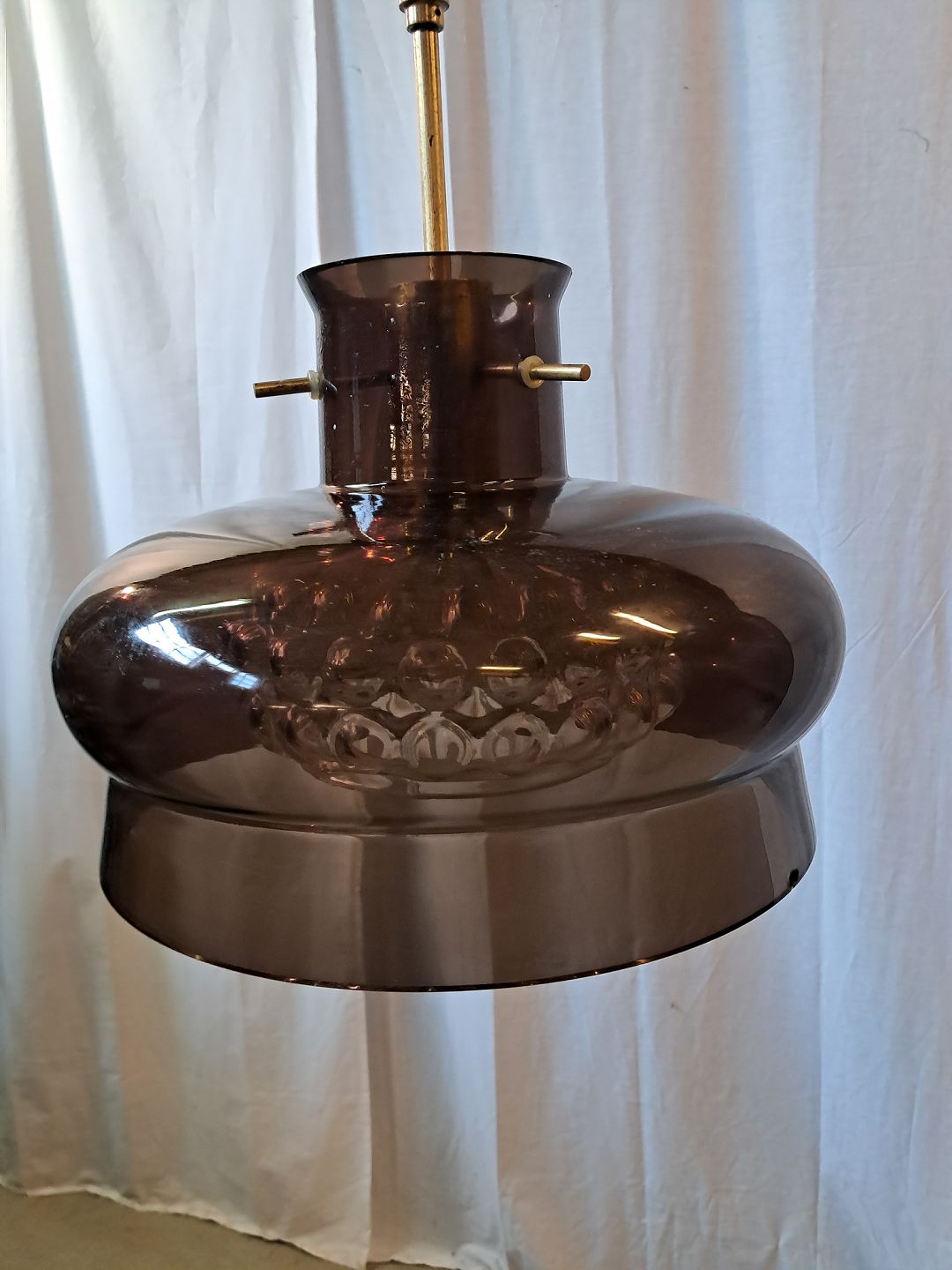 Beskrivelse: Loftlampe i glas, fra 1970erne.