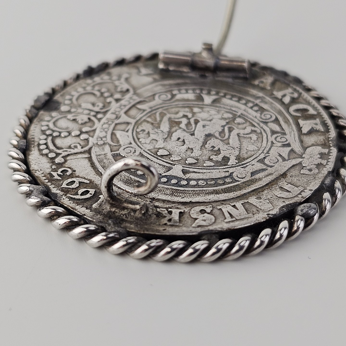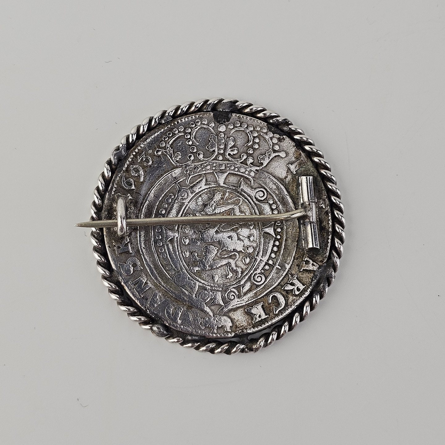 : Broche af en dansk sølvmønt slået i 1693 i Glückstadt