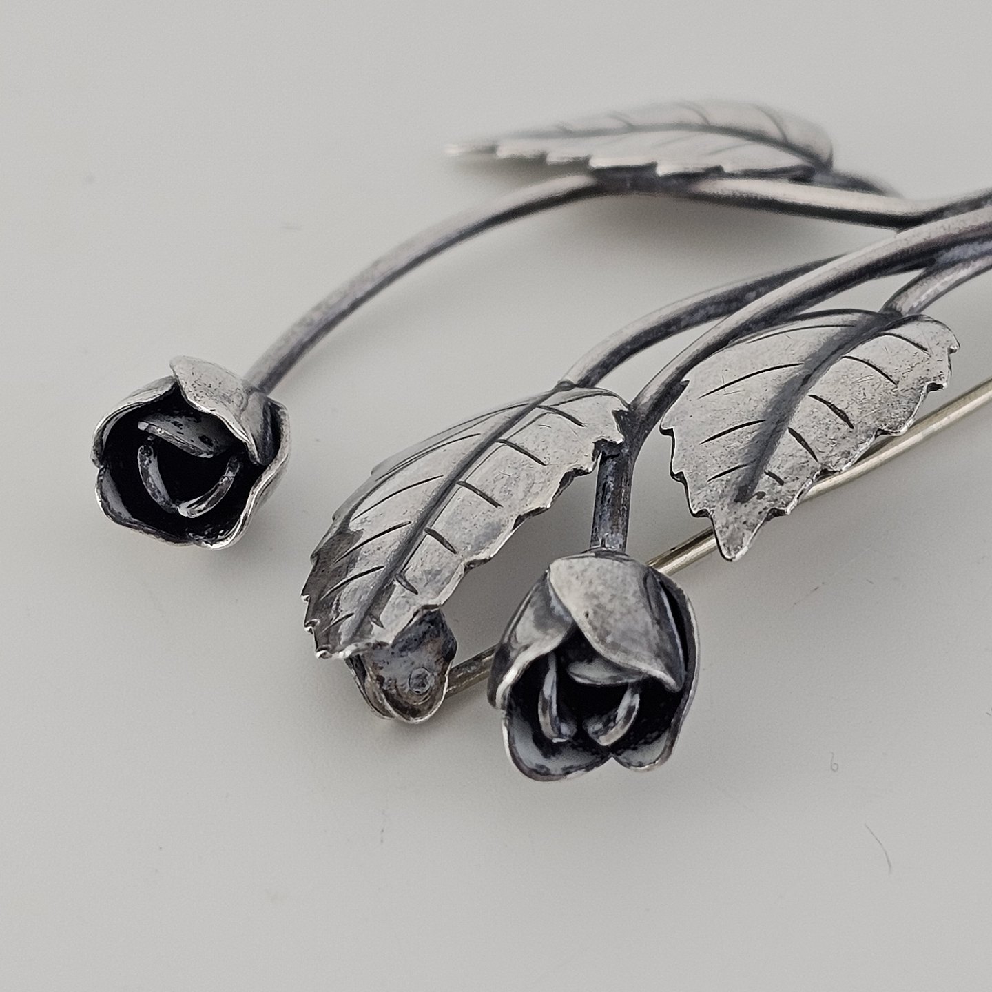 Beskrivelse: Broche i sterling sølv med motiv af en lille blomsterbuket
