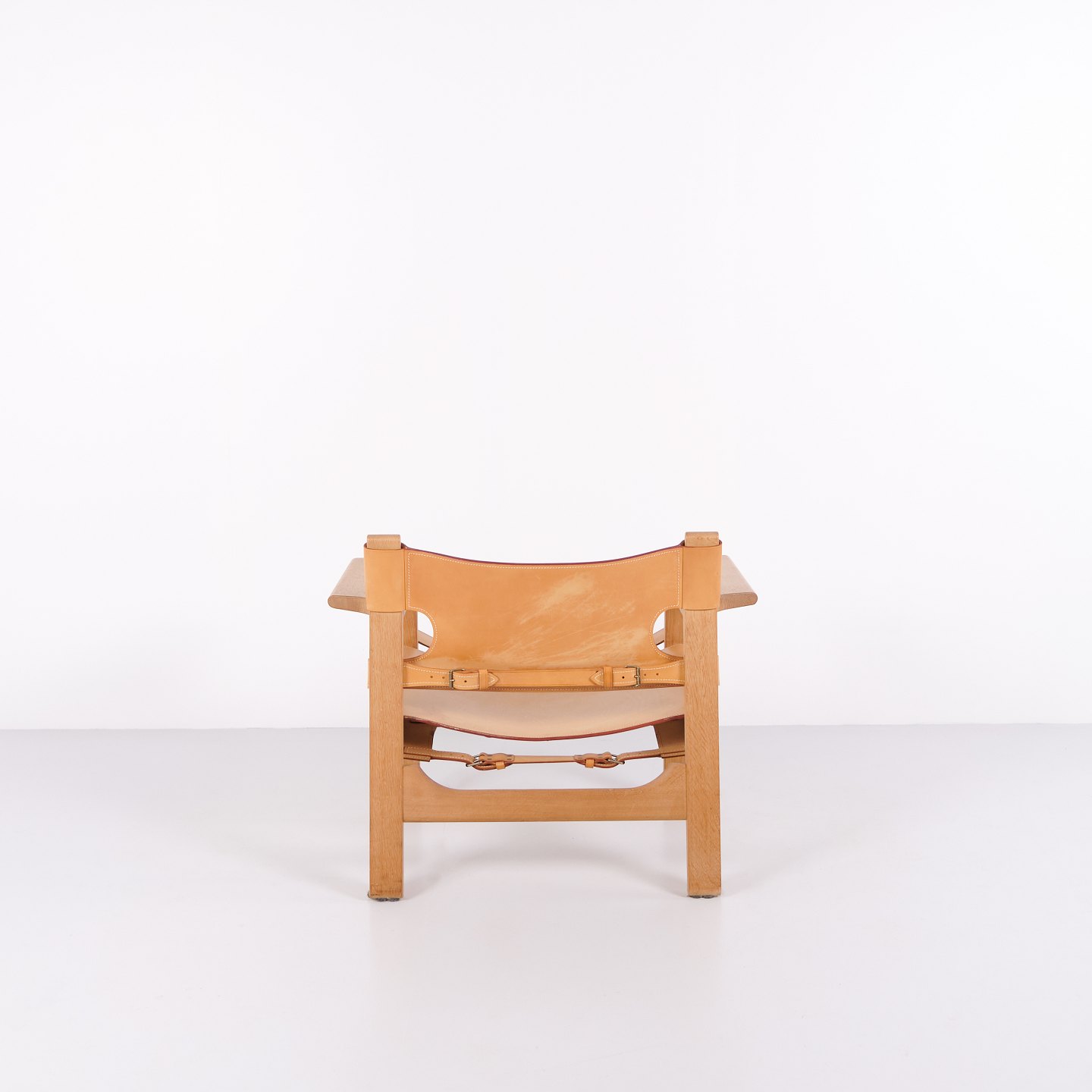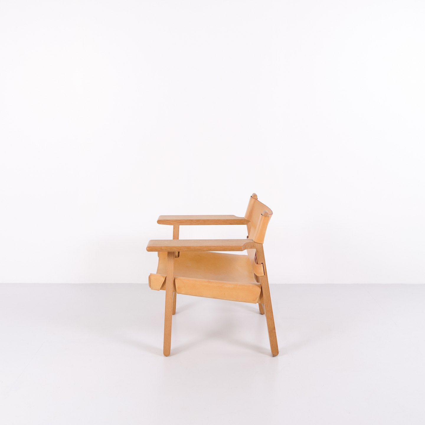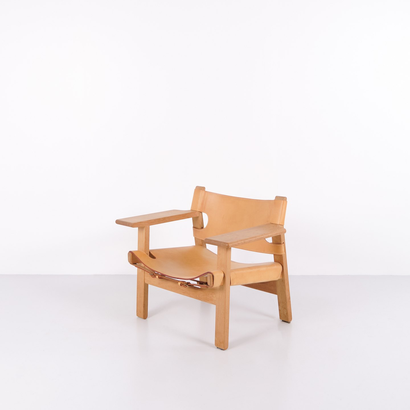 Beskrivelse: Børge Mogensen Den Spanske Stol model BM2226 i naturligt patineret kernelæder fra 1960’erne. Klassisk dansk designikon med robust udtryk.