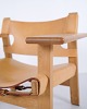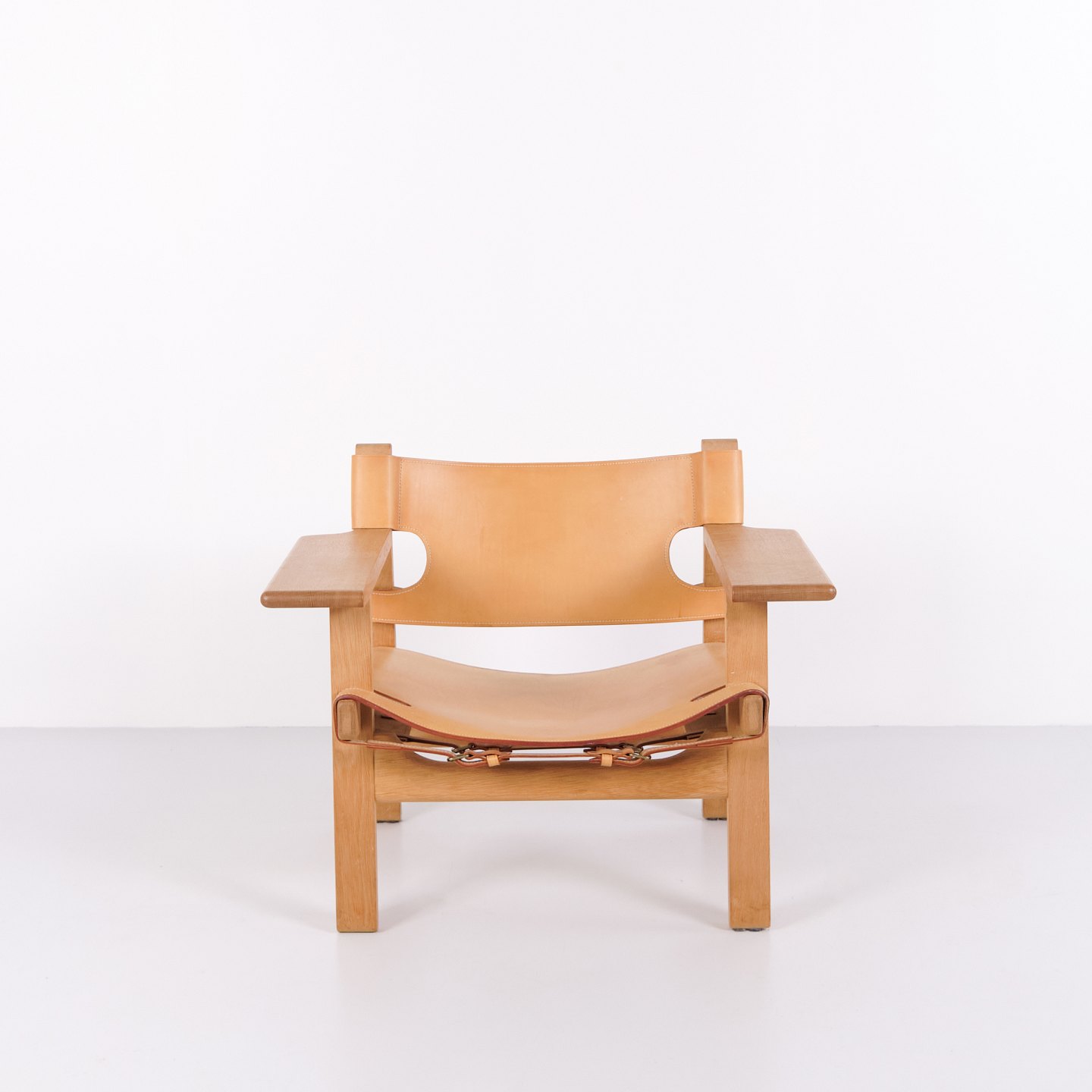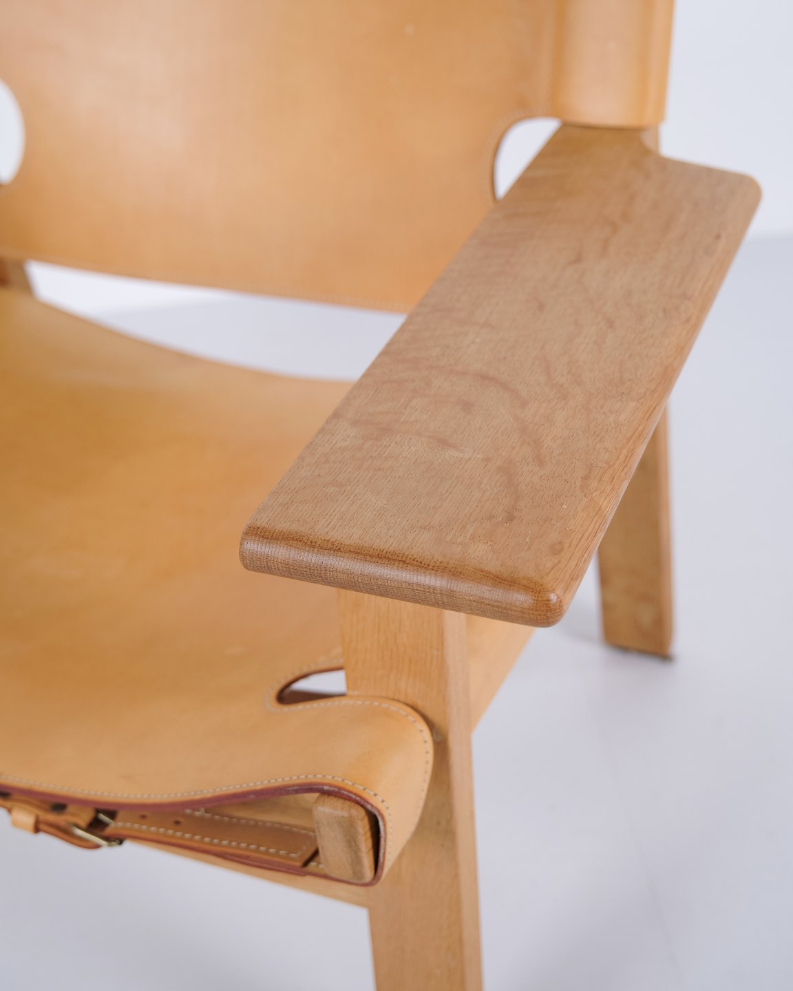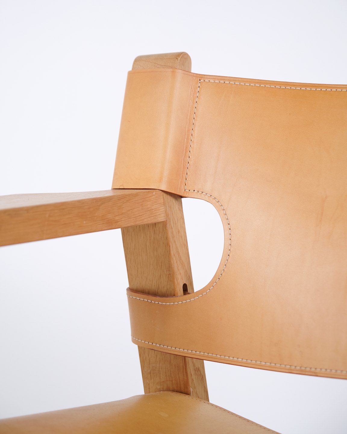 Beskrivelse: Børge Mogensen Den Spanske Stol model BM2226 i naturligt patineret kernelæder fra 1960’erne. Klassisk dansk designikon med robust udtryk.