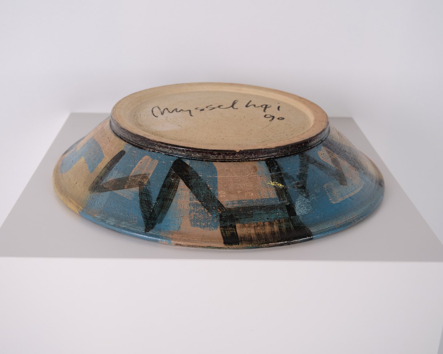 Beskrivelse: Unika keramikfad udført og signeret af keramiker Per Weiss (f. 1953) i 1990. Fadet er dekoreret i farverige nuancer med motiv af Mysselhøj, en oldtidsgravhøj beliggende ca. 1 km vest for Gammel Lejre ved Roskilde, hvor både Per og Lene Weiss tidligere har haft tilknytning. Motivet tager udgangspunkt i det historiske landskab omkring Lejre og er udført som et kunstnerisk unika arbejde.