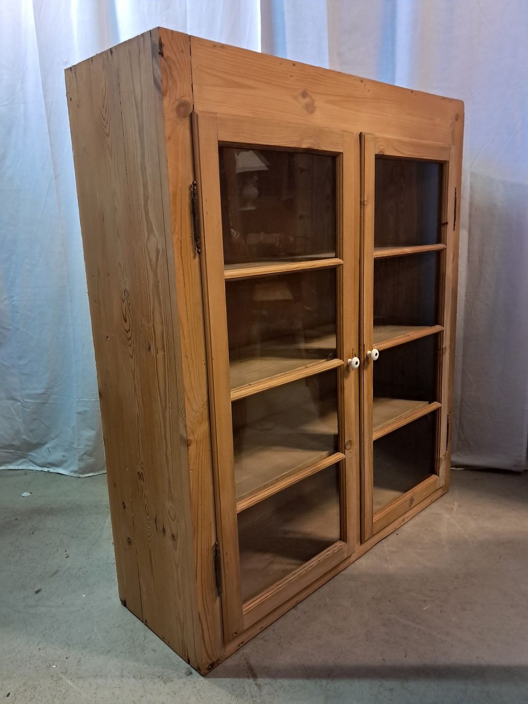 Beskrivelse: Gammelt køkkenskab i massivt fyrretræ, fra 1920erne.