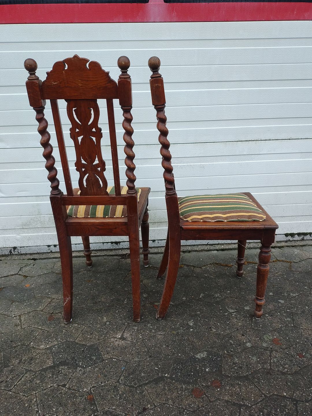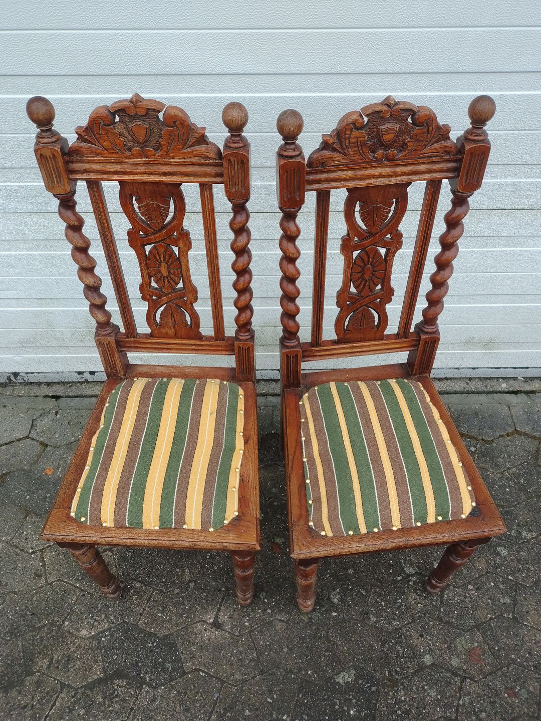 : 2 Stole i bejdset massivt egetræ, fra 1920erne.