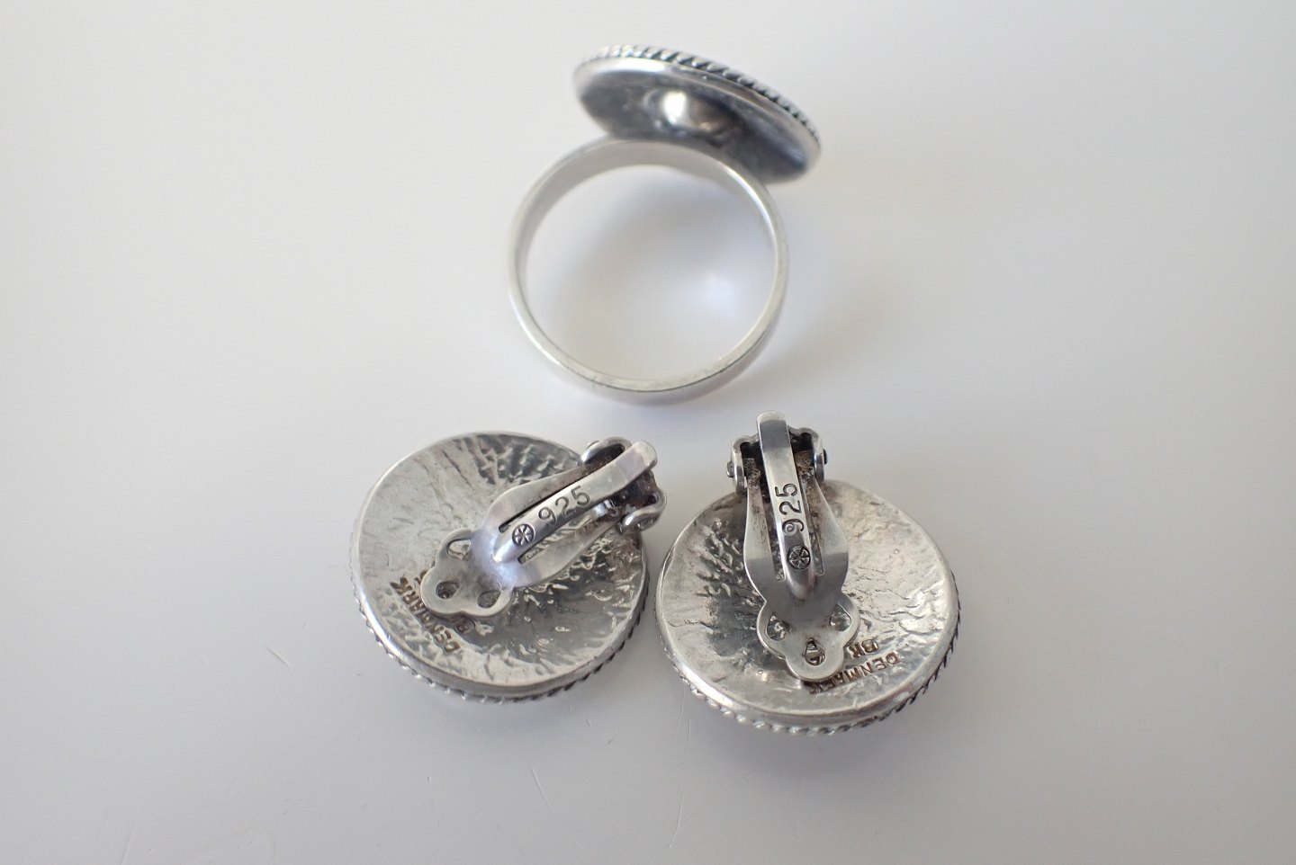 Borells - sterling sølvsæt bestående af ring og øreclips.