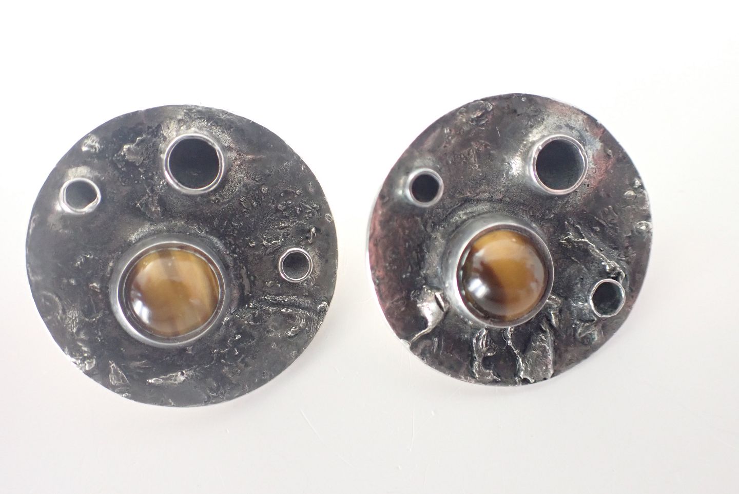 Lysgård design - et par øreklips i patineret sterling sølv med tigerøge sten.