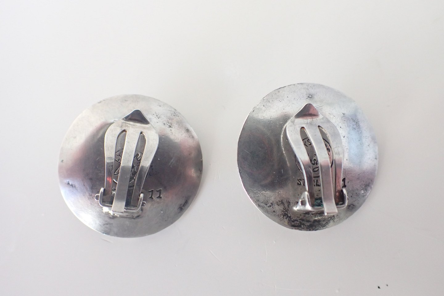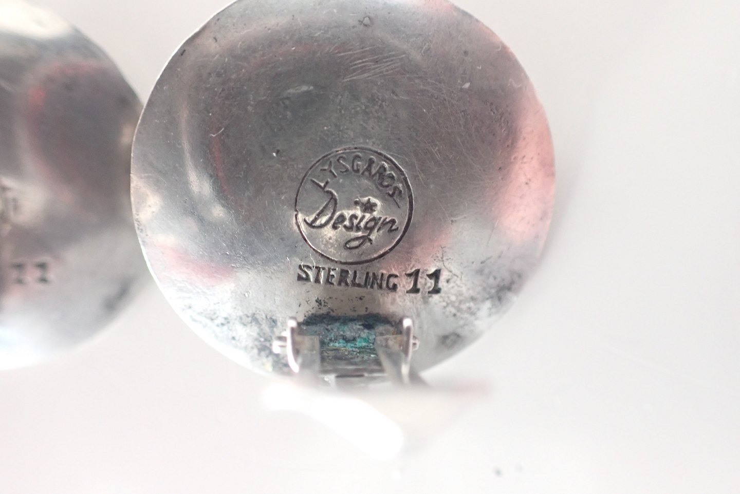 Beskrivelse: Lysgård Design - Et par planet/måleformede øreklip i patineret sterling sølv med cabochonslebne tigerøje sten. Stemplet Lysgård design, sterling. #11.Ca. 1970. Samlet vægt: 12,4 gram. I fin stand.