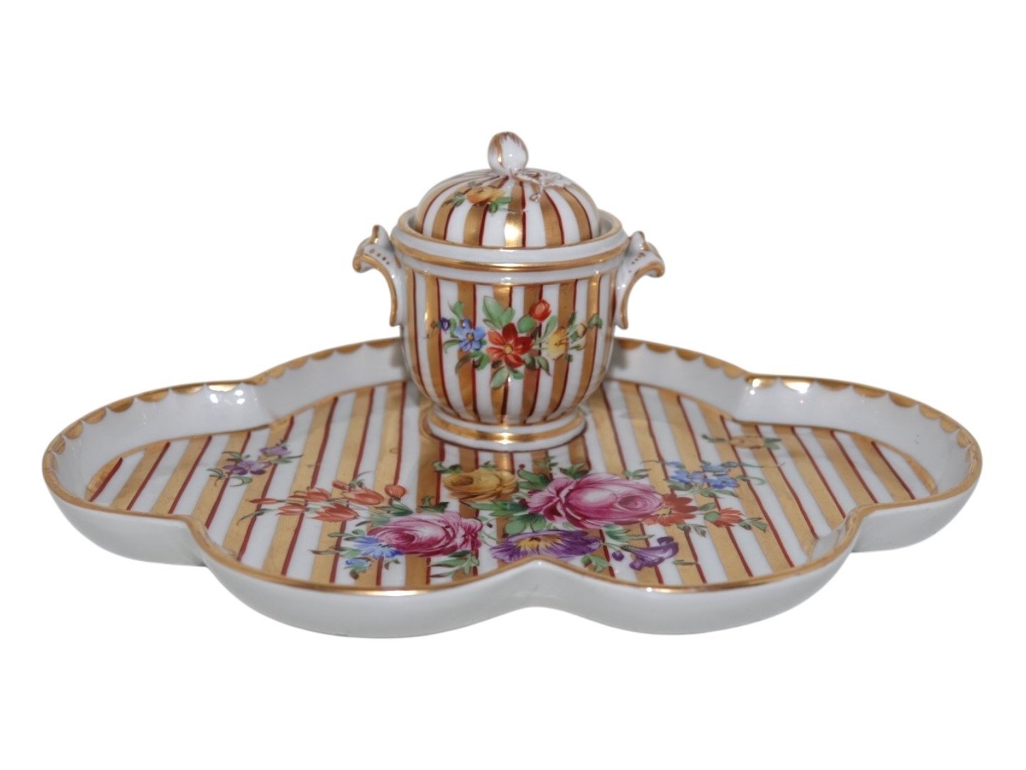 Description: Porcelain most likely from Germany, inkwell with Saxon Flower decoration.
