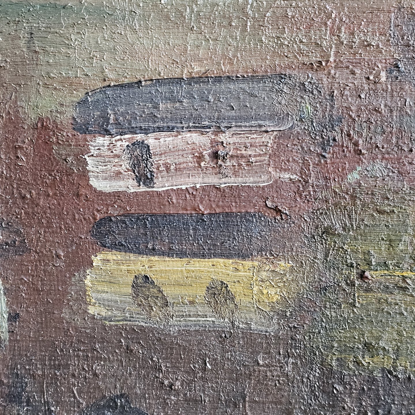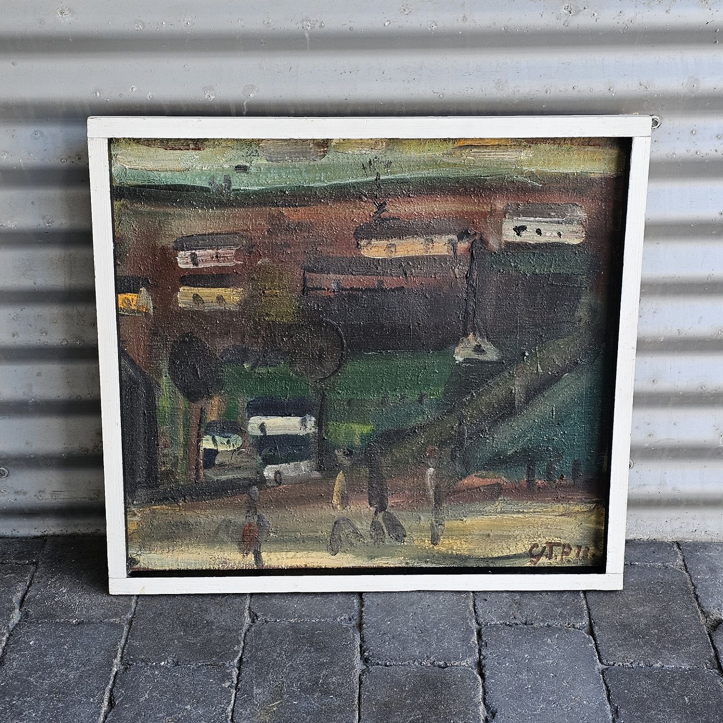 Beskrivelse: Oliemaleri på lærred med hvid ramme