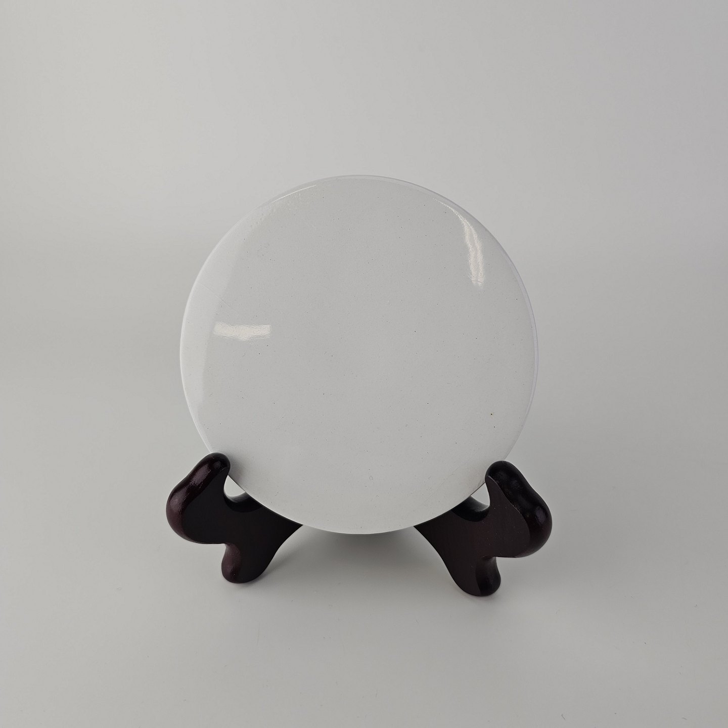 Stel i hvidt porcelæn med dekoration af grønne blade.