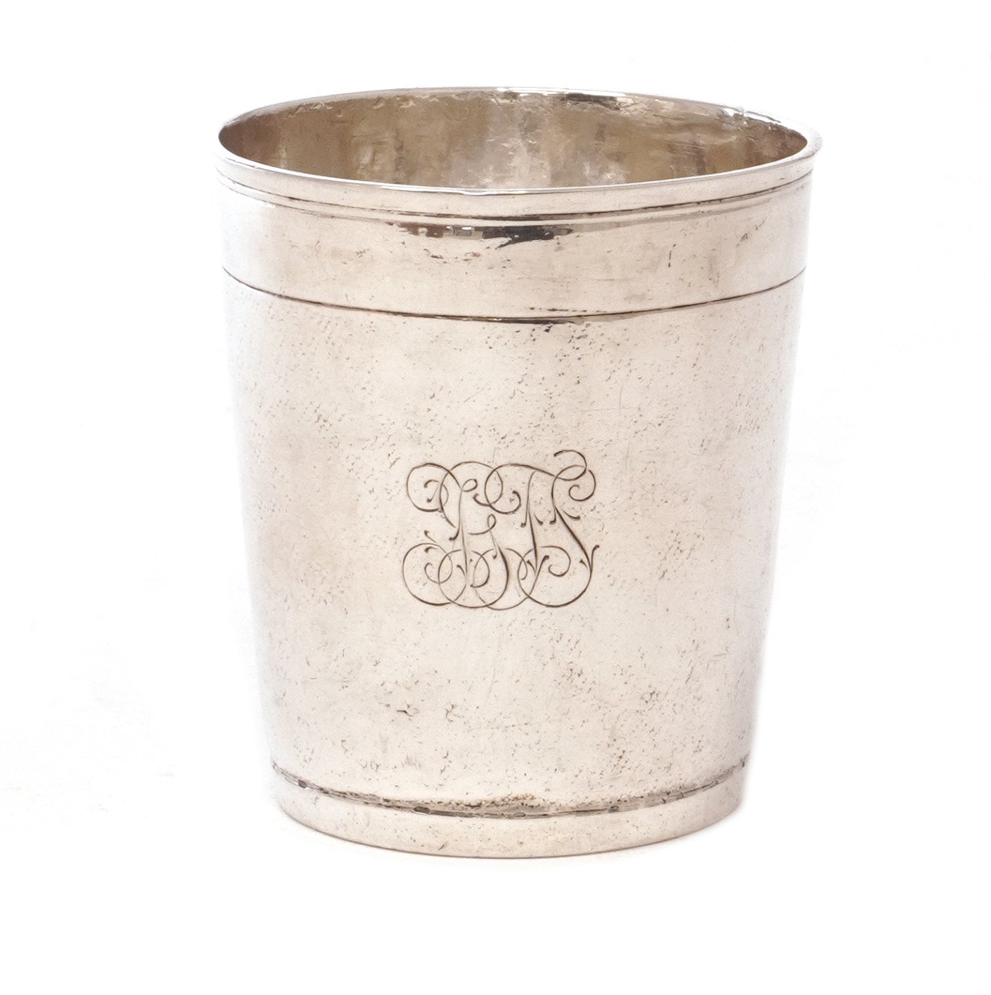 Barokt let nålepunslet sølvbæger af Villads Frandsen, København, 1687-1715. H: 6,4cm