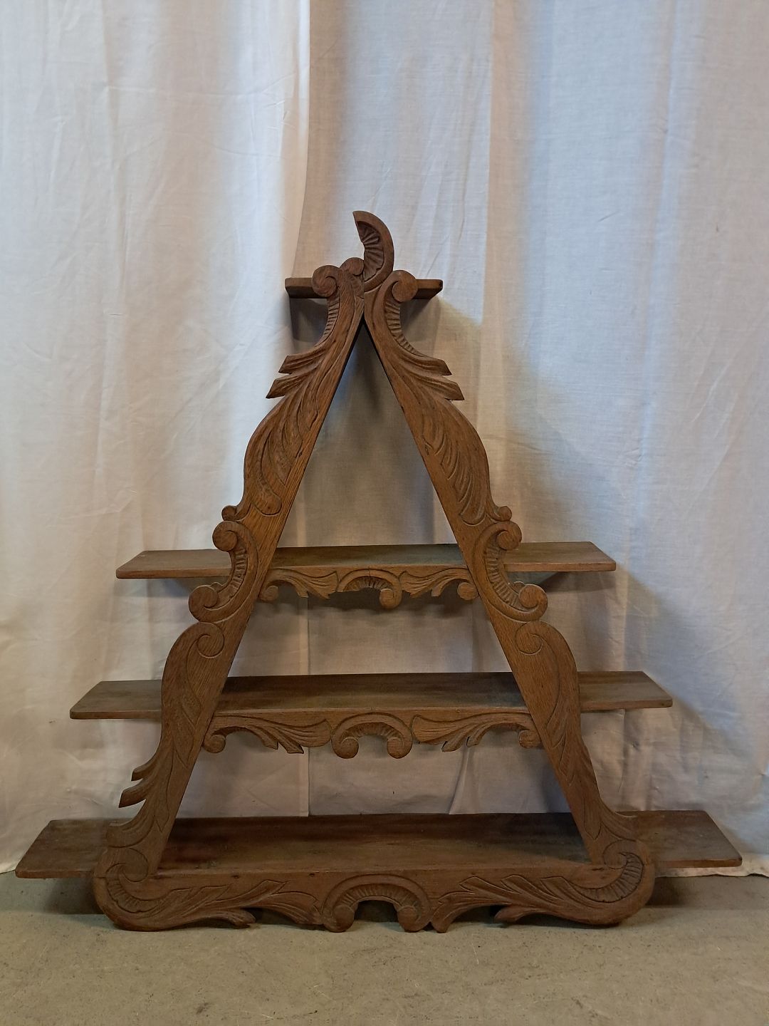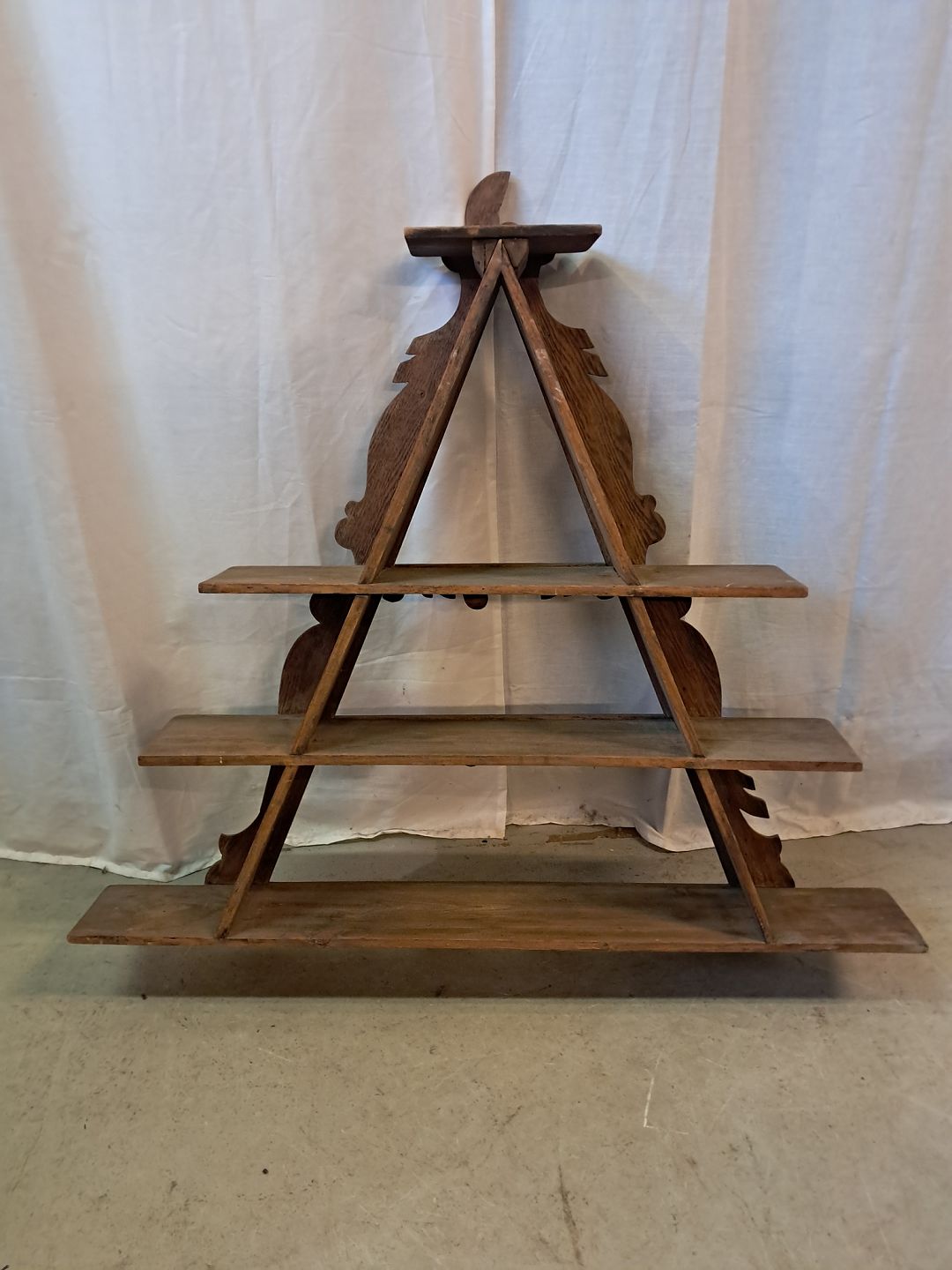 Beskrivelse: Hylde i massivt ege og fyrretræ, fra 1930erne.