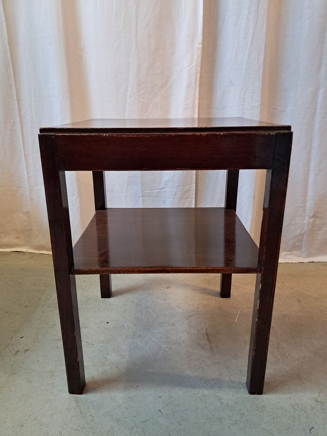 Beskrivelse: Lampebord i lakeret og bejdset fyrretræ, fra 1950erne.