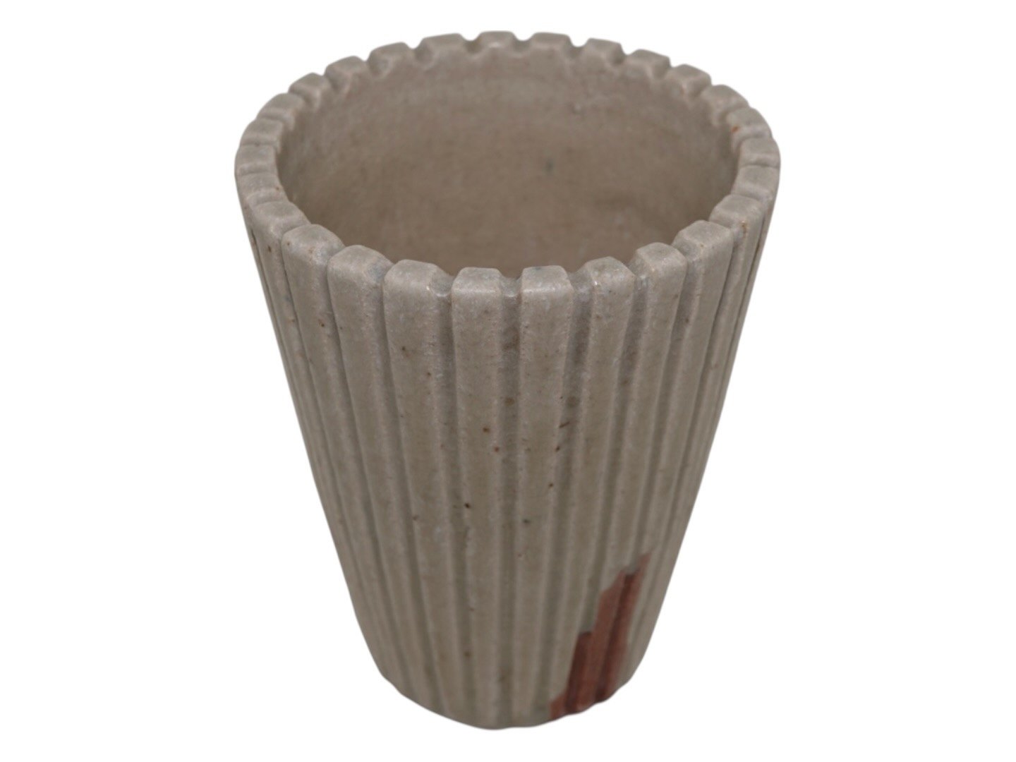 Beskrivelse: Arne Bang keramik, vase med riller.