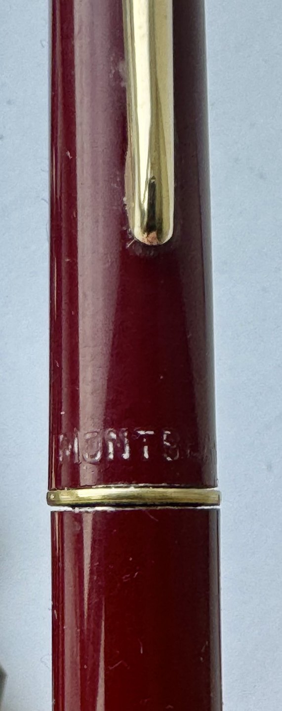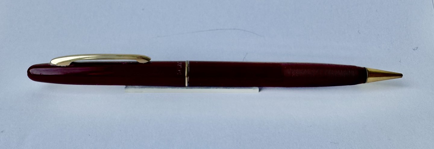 Beskrivelse: Slank Bordeaux Montblanc nr. 222 skrueblyant fra omkring 1960. Fremstår i virkelig god stand. bly-stiften kører frem tilbage når mekanismen aktiveres. 13,8 cm lang