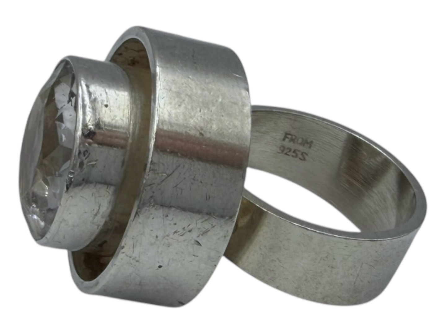 Beskrivelse: Niels Erik From sterlingsølv, stor ring med krystal.