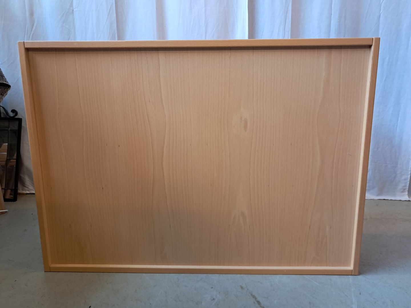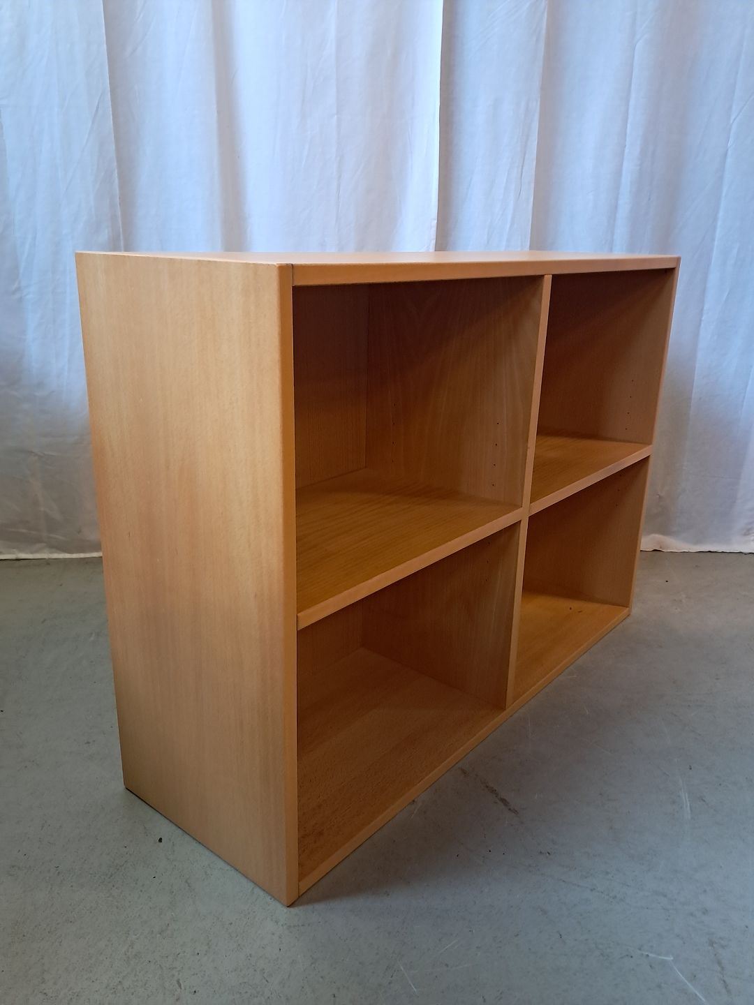 Beskrivelse: Reol i fineret bøgetræ, fra 1990erne.