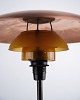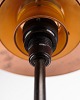 Beskrivelse: PH 3,5/2 bordlampe designet af Poul Henningsen og fremstillet af Louis Poulsen i 1930’erne. Lampen er udført med overskærm i kobber, ravfarvede glasskærme og fod i bruneret messing.