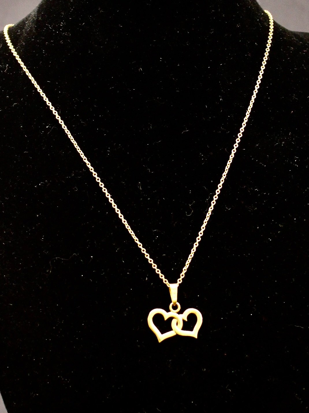 Beskrivelse: 8 karat guld hjerter 1,3 x 1,9 cm. og 8 karat guldkæde 42,5 cm. fra guldsmed Herman Siersbøl København emne nr. 634141