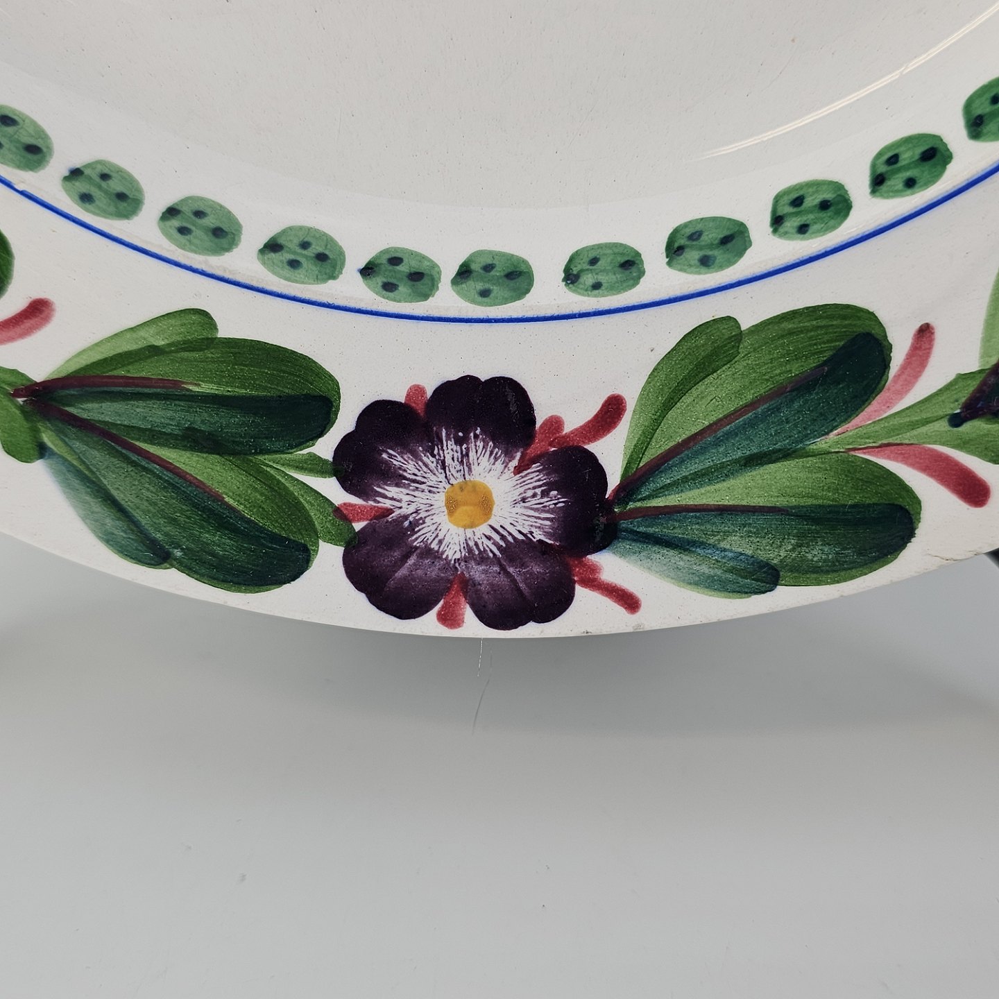 Aurikel er stel i hvid fajance med blomstermotiv