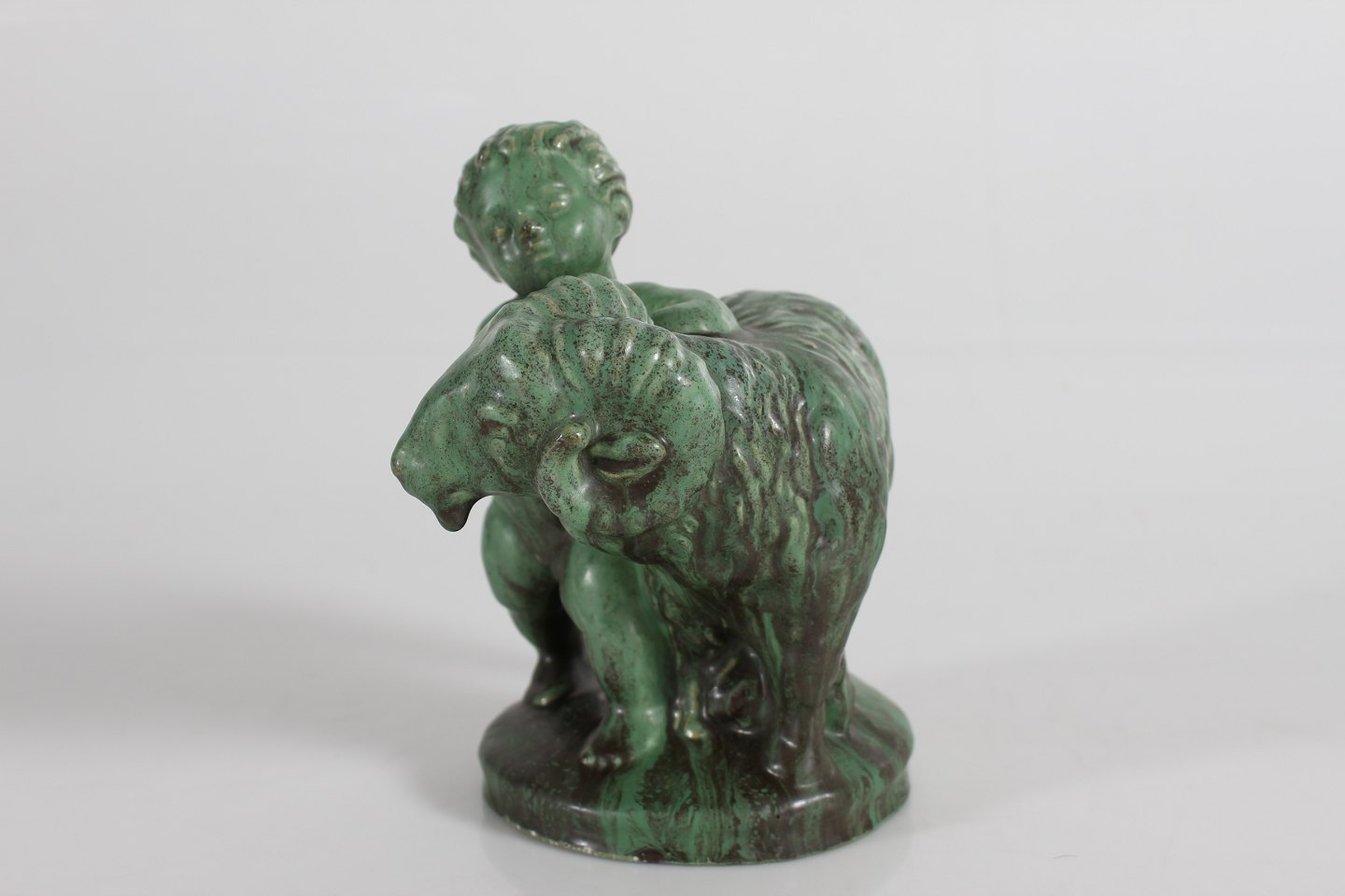 Dreng siddende med vædder